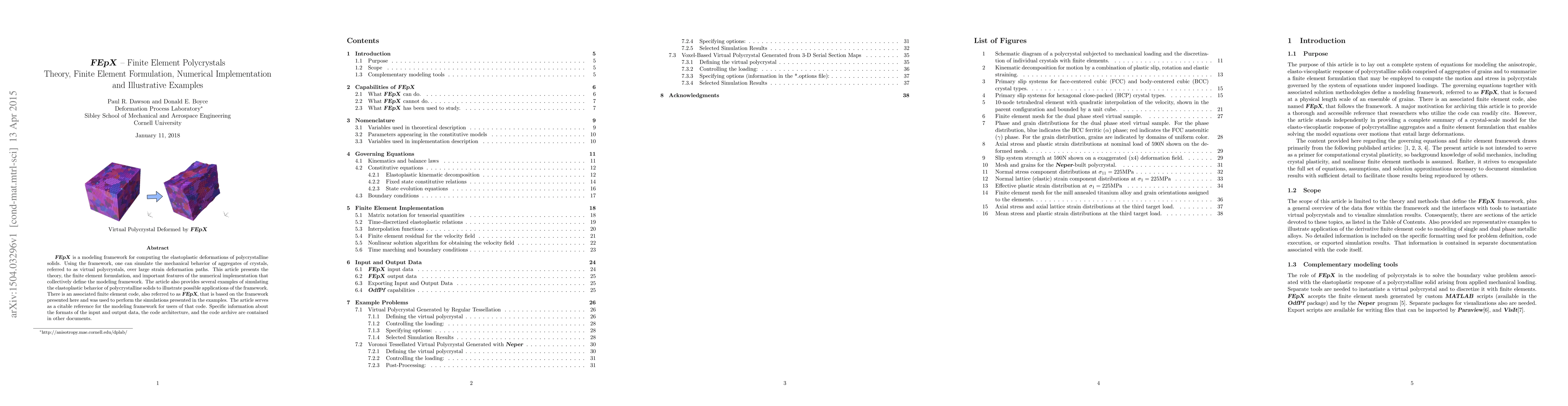 FEpX is a modeling framework for simulating elastoplastic deformations of polycrystalline solids, detailing its theory, finite element formulation, and numerical implementation. The article provides examples to illustrate the framework's applications and serves as a reference for users of the associated FEpX code.