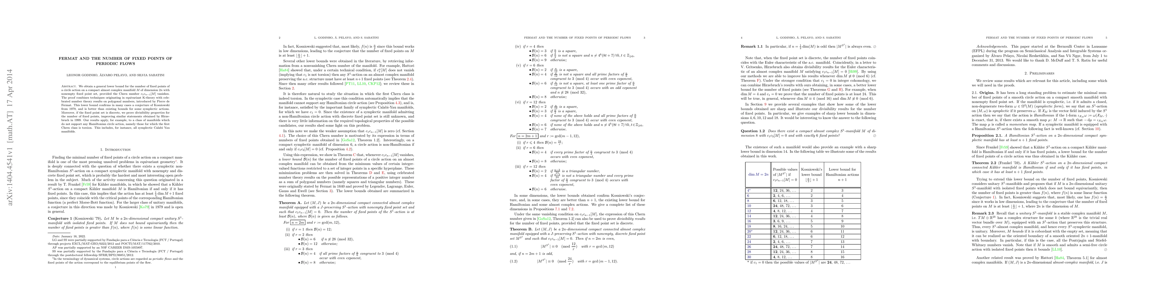 This paper establishes a new lower bound for the number of fixed points in periodic flows on compact almost complex manifolds, leveraging equivariant K-theory and Fermat's polygonal number theory. It confirms Kosniowski's conjecture and improves existing bounds for certain symplectic actions.