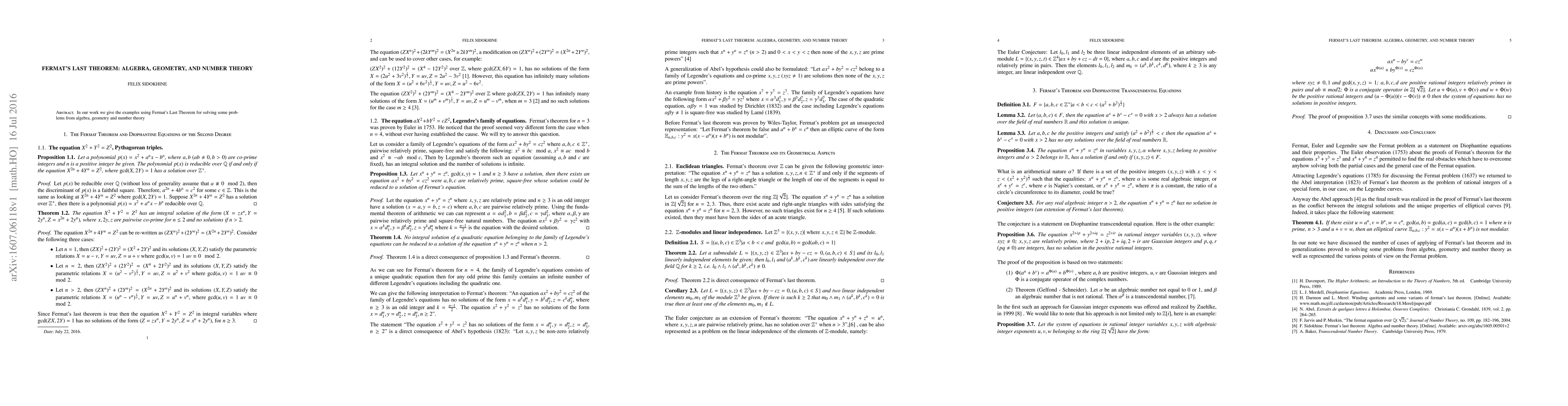 In our work we give the examples using Fermat's Last Theorem for solving some problems from algebra, geometry and number theory