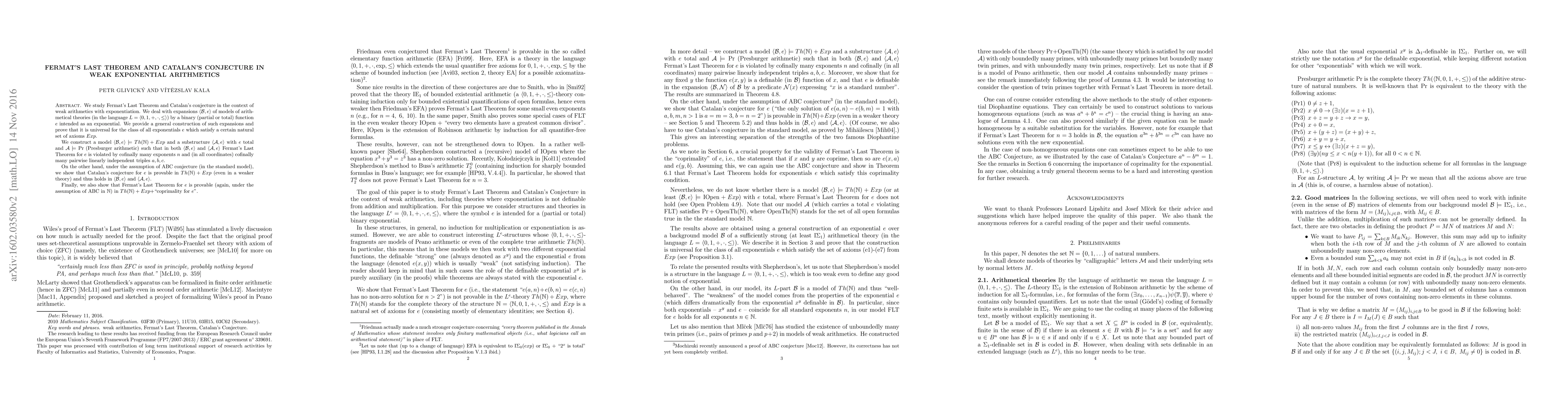 This paper explores Fermat's Last Theorem and Catalan's conjecture within weak arithmetics that incorporate exponentiation. It constructs universal models where Fermat's Last Theorem is violated, while Catalan's conjecture is provable under the assumption of the ABC conjecture.