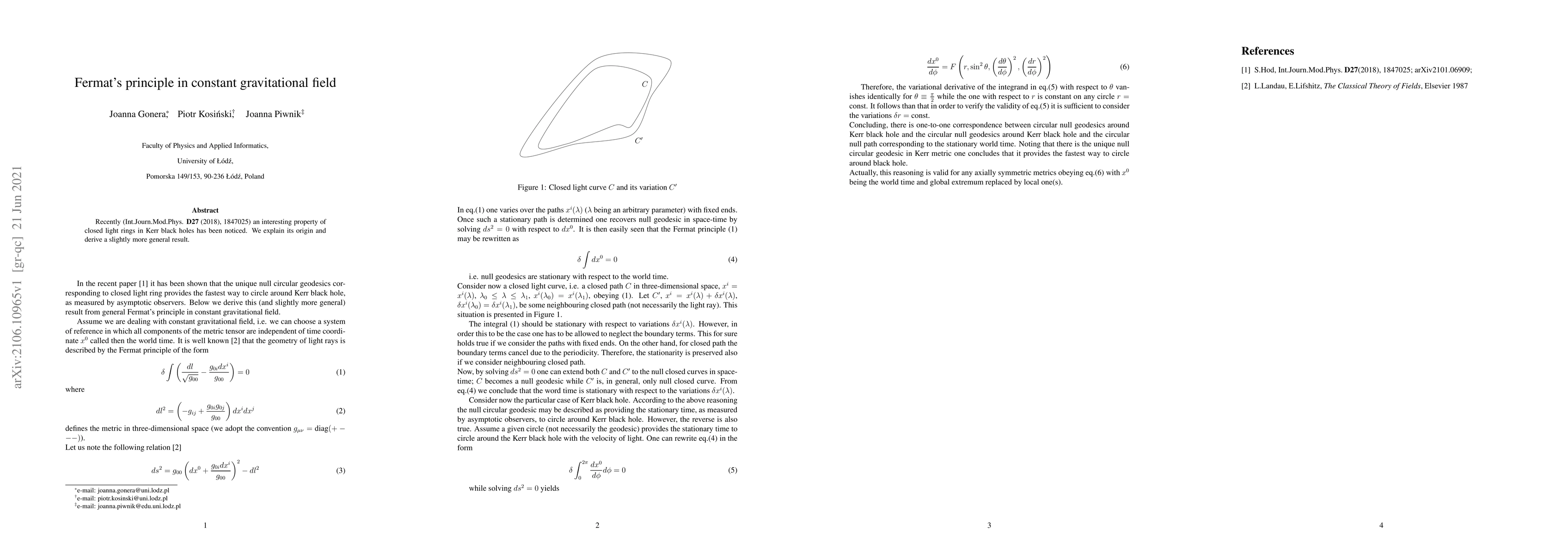 This paper explains a peculiar trait of light circling around Kerr black holes, previously noted in 2018. It broadens this finding, attributing its origin and deriving a more general result regarding Fermat's principle in a consistent gravitational field.