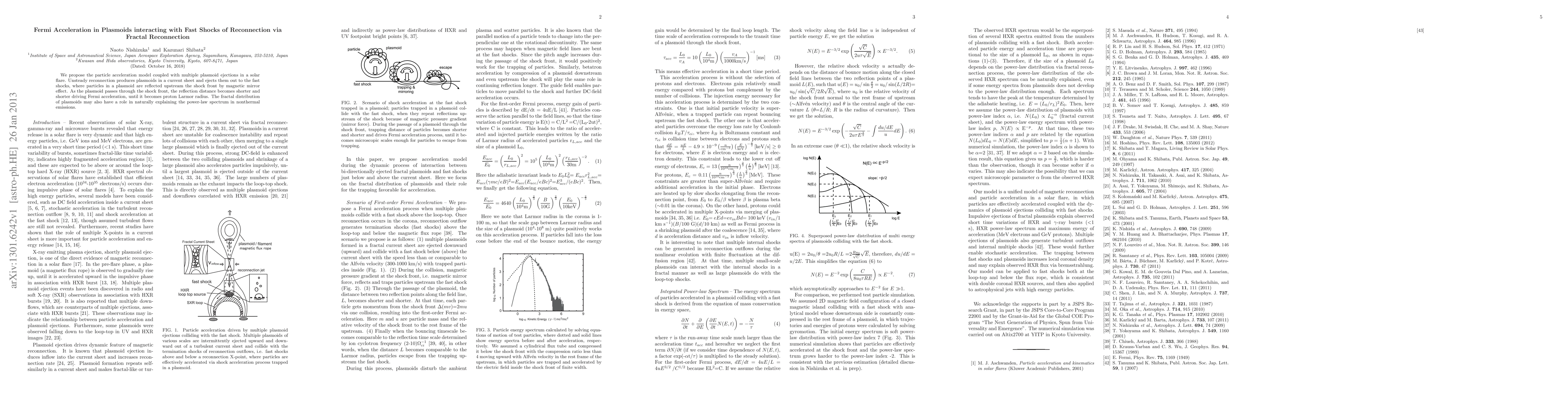 A new model proposes that Fermi acceleration occurs in plasmoids ejected from fast shocks during solar flares, driven by a magnetic mirror effect and fractal distribution of plasmoids.