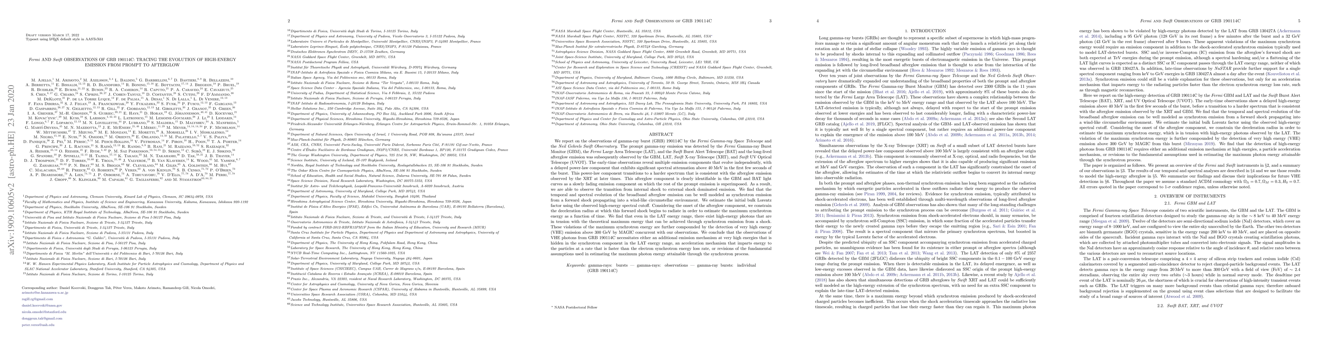 Researchers studied gamma-ray burst 190114C using Fermi and Swift telescopes, finding a delayed power-law component that transitions into an afterglow with a harder spectrum. The observations challenge the maximum energy limit of synchrotron emission and suggest alternative explanations for high-energy emissions above 300 GeV.