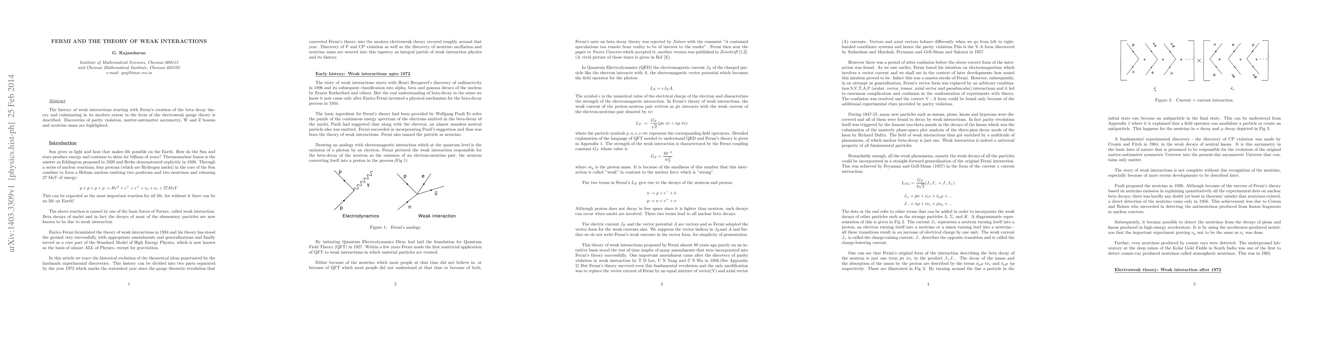 The history of weak interactions starting with Fermi's creation of the beta decay theory and culminating in its modern avatar in the form of the electroweak gauge theory is described. Discoveries of parity violation, matter-antimatter asymmetry, W and Z bosons and neutrino mass are highlighted.