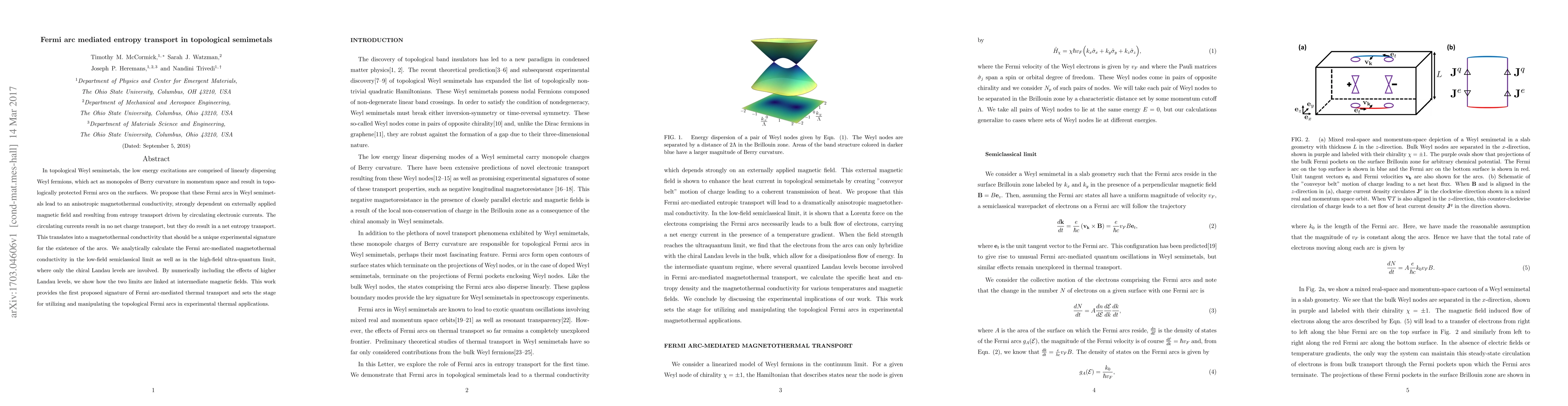First to propose Fermi arc-mediated thermal transport as an experimental signature for topological Weyl semimetals, distinguishing it from previous research focused on charge transport properties.