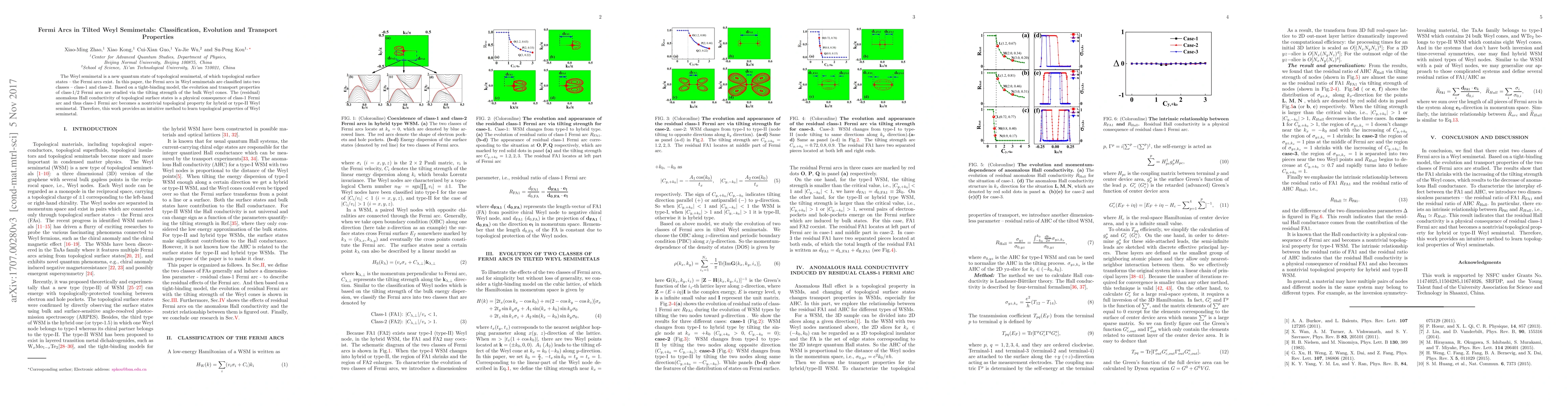 The Weyl semimetal is a new quantum state of topological semimetal, of which topological surface states -- the Fermi arcs exist. In this paper, the Fermi arcs in Weyl semimetals are classified into two classes -- class-1 and class-2. Based on a tight-binding model, the evolution and transport properties of class-1/2 Fermi arcs are studied via the tilting strength of the bulk Weyl cones. The (residual) anomalous Hall conductivity of topological surface states is a physical consequence of class-1 Fermi arc and thus class-1 Fermi arc becomes a nontrivial topological property for hybrid or type-II Weyl semimetal. Therefore, this work provides an intuitive method to learn topological properties of Weyl semimetal.
