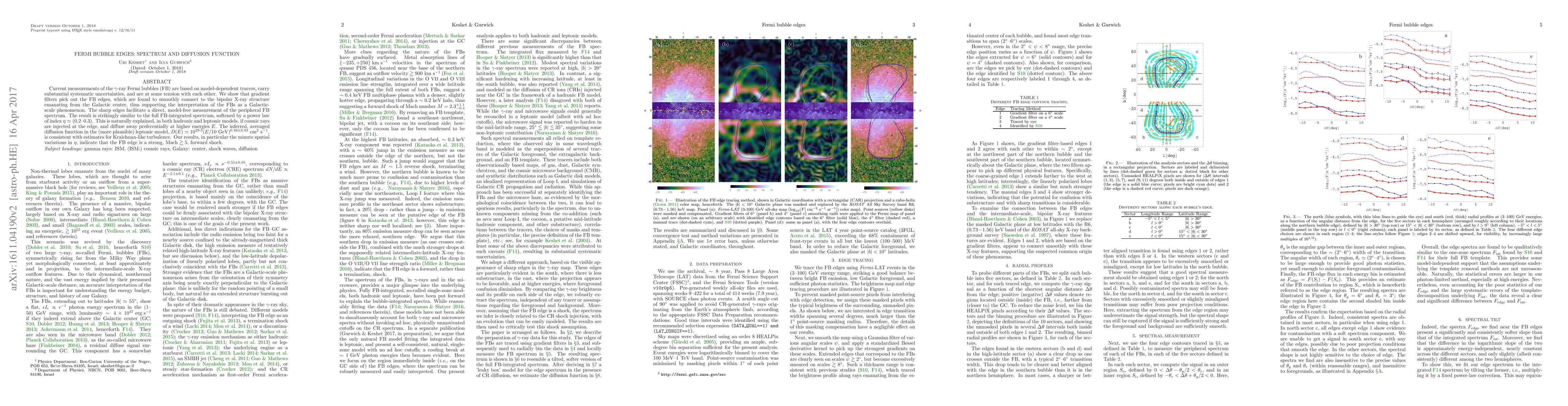 Researchers used gradient filters to measure the spectrum of Fermi bubble edges, finding a power-law relationship with index 0.2-0.3, consistent with cosmic rays diffusing away at higher energies.