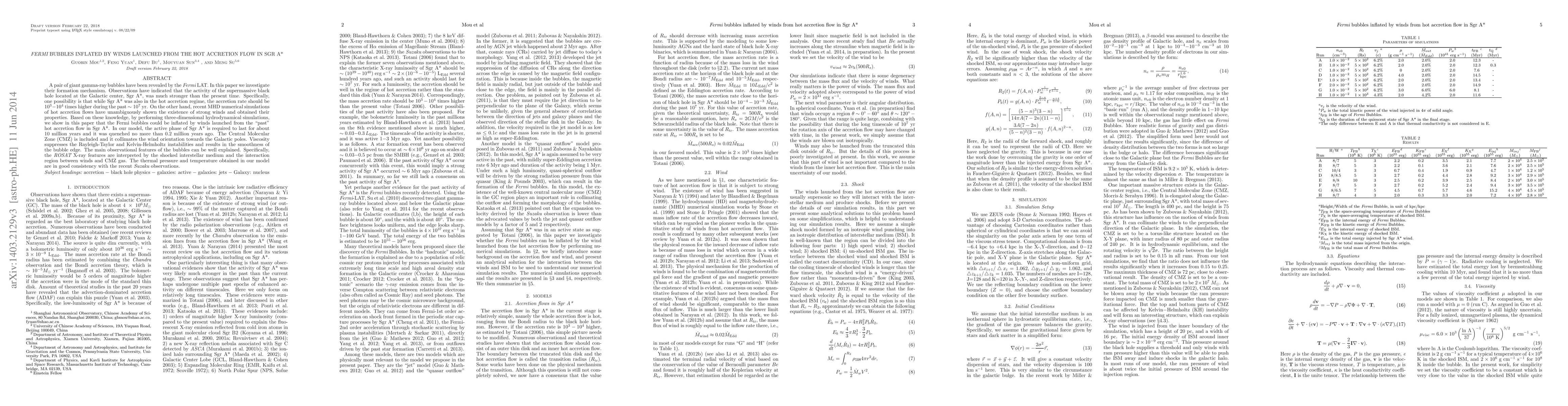 This paper proposes that the Fermi bubbles, giant gamma-ray structures, were formed by strong winds launched from the hot accretion flow around the supermassive black hole Sgr A* during a more active phase. The model suggests this active phase lasted about 10 million years and ended no more than 0.2 million years ago, explaining the bubbles' main observational features.