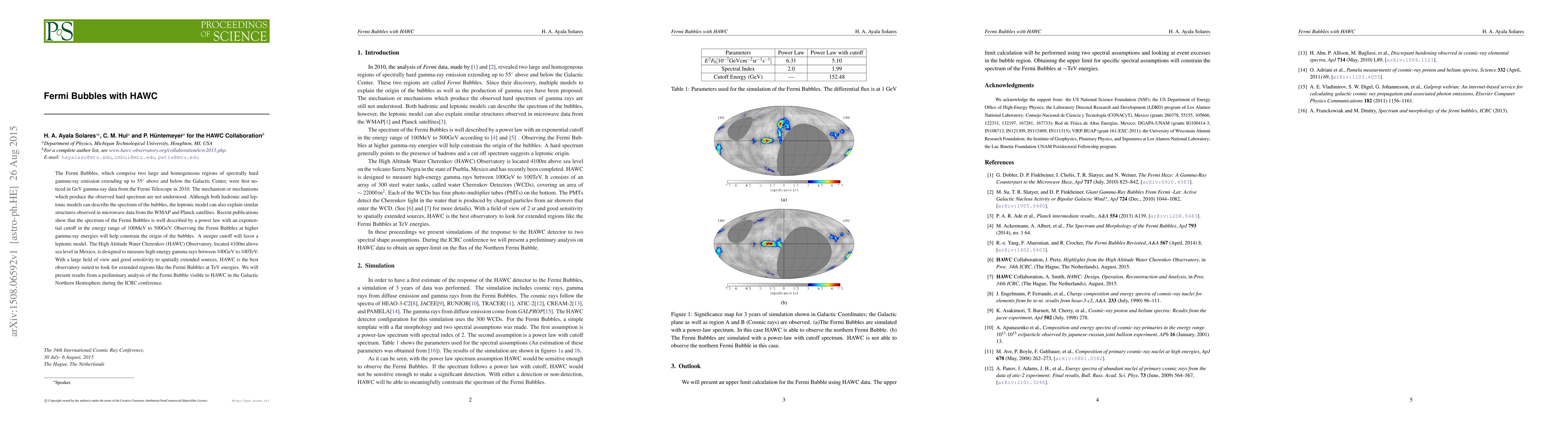 The Fermi Bubbles, large gamma-ray regions extending above and below the Galactic Center, remain a mystery in terms of their origin. The High Altitude Water Cherenkov (HAWC) Observatory aims to observe these structures at TeV energies to better understand their spectral cutoff and favor either hadronic or leptonic models. Preliminary results from HAWC's analysis of the northern Fermi Bubble will be presented.