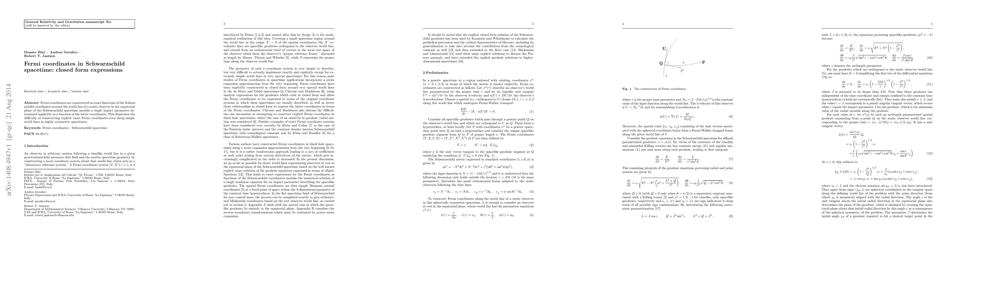 This paper constructs Fermi coordinates around a static observer in Schwarzschild spacetime, providing exact expressions in terms of Schwarzschild coordinates, though the impact parameter is determined implicitly. It highlights the challenge of finding explicit exact Fermi coordinates in symmetric spacetimes.