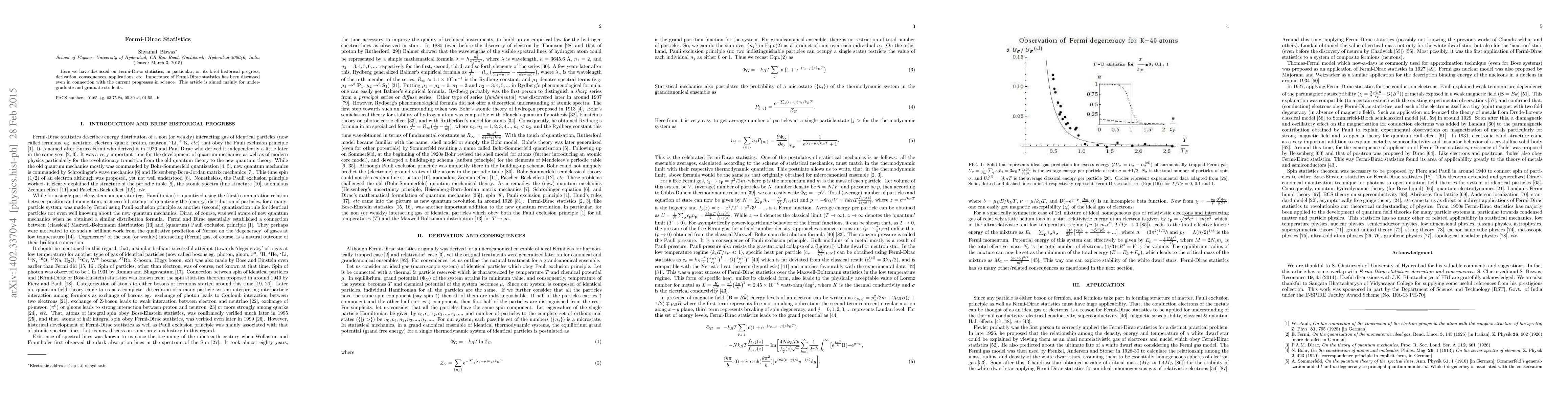 This paper discusses Fermi-Dirac statistics, its historical background, derivation, and applications, emphasizing its importance in modern science. It aims to provide a clear understanding of the topic for undergraduate and graduate students.