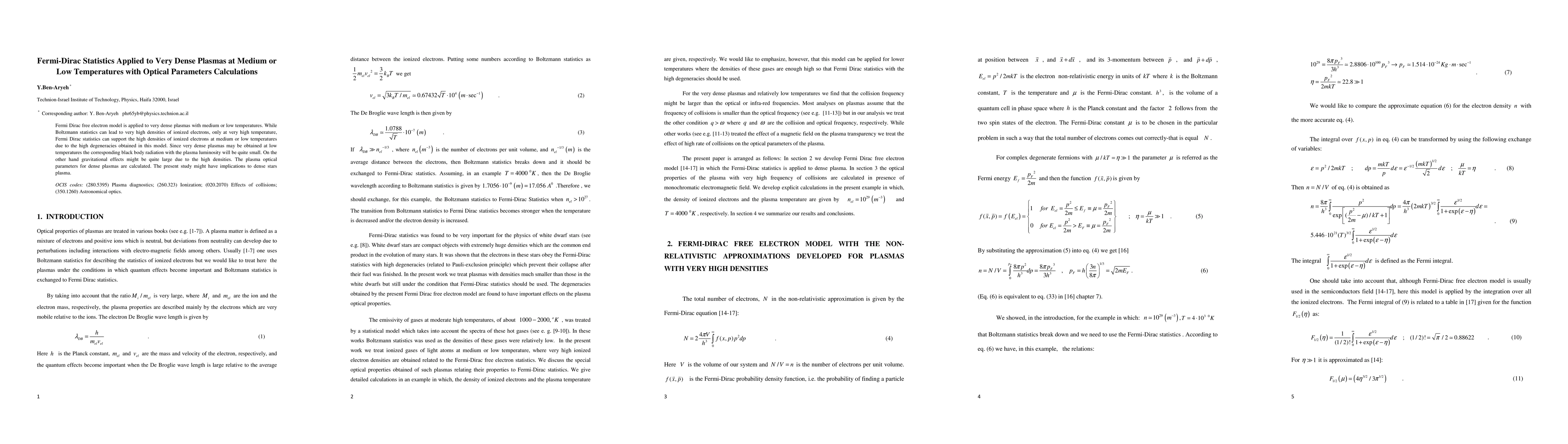 This paper applies Fermi-Dirac statistics to very dense plasmas at medium or low temperatures, demonstrating that it supports high densities of ionized electrons due to high degeneracies. It calculates the optical properties of such plasmas, which may have implications for understanding the behavior of dense stars' plasma.