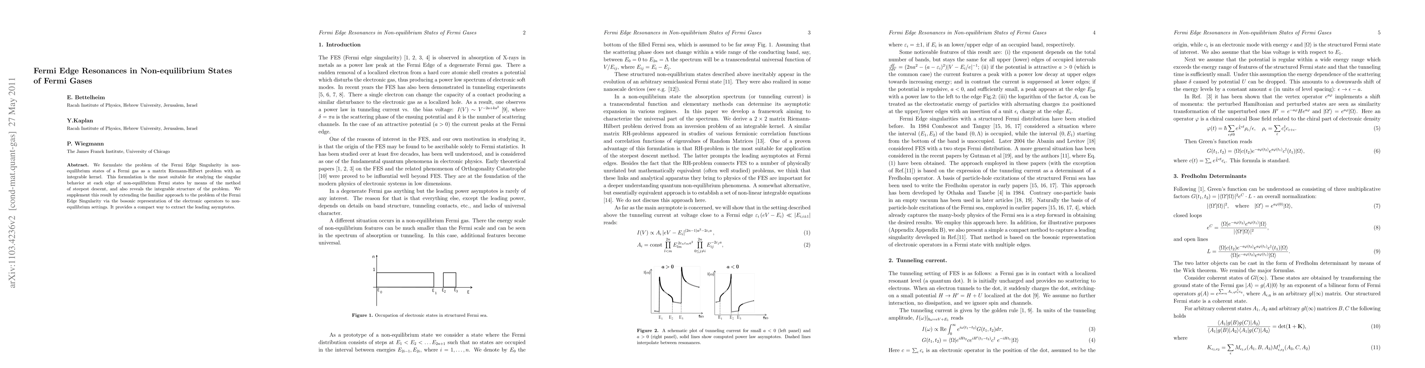 We formulate the problem of the Fermi Edge Singularity in non-equilibrium states of a Fermi gas as a matrix Riemann-Hilbert problem with an integrable kernel. This formulation is the most suitable for studying the singular behavior at each edge of non-equilibrium Fermi states by means of the method of steepest descent, and also reveals the integrable structure of the problem. We supplement this result by extending the familiar approach to the problem of the Fermi Edge Singularity via the bosonic representation of the electronic operators to non-equilibrium settings. It provides a compact way to extract the leading asymptotes.