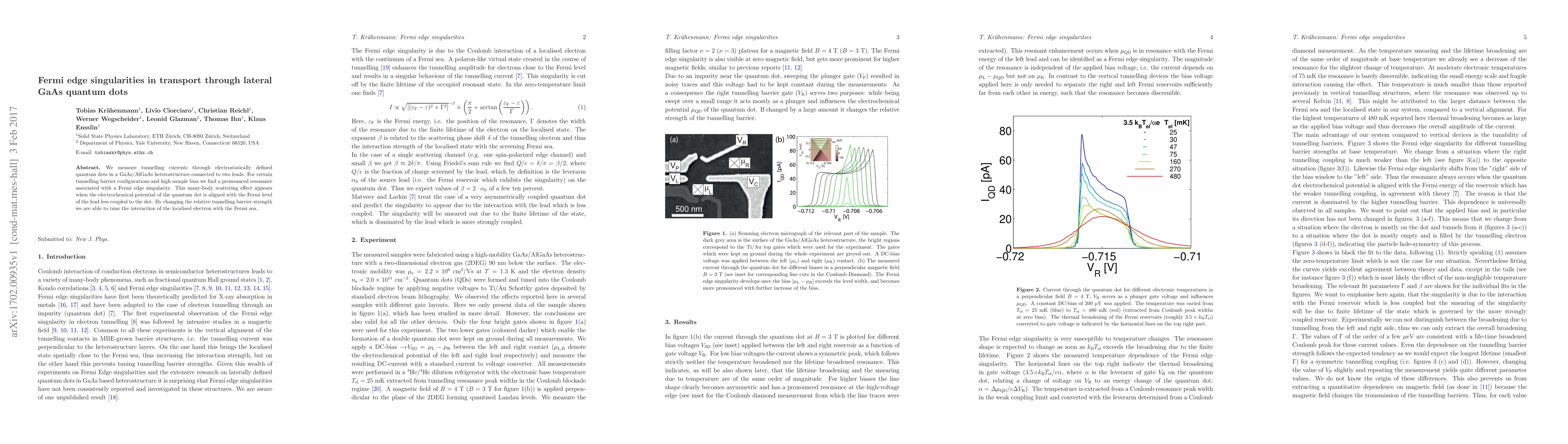 This study investigates tunnelling currents through GaAs quantum dots, revealing a pronounced resonance due to Fermi edge singularities when the quantum dot's electrochemical potential aligns with the Fermi level of the less coupled lead. The interaction between the localised electron and the Fermi sea is tunable via varying the tunnelling barrier strength.