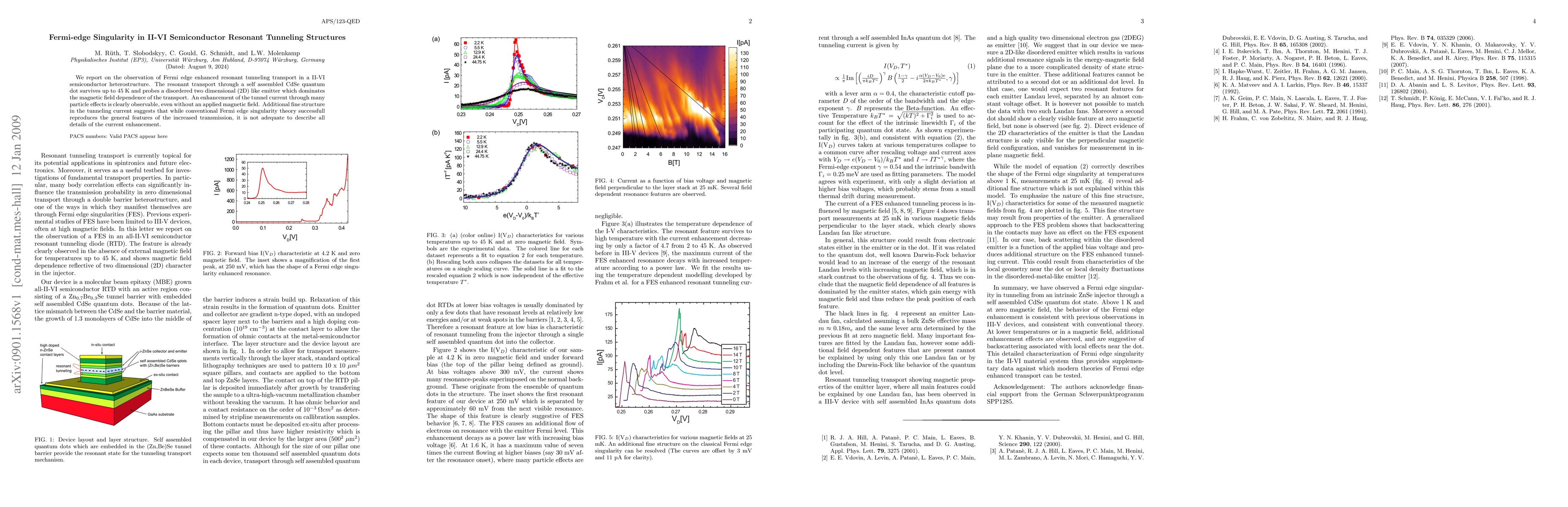 The study observes Fermi edge enhanced resonant tunneling in a II-VI semiconductor heterostructure, showing significant current enhancement due to many-particle effects even without an applied magnetic field. While conventional Fermi edge singularity theory explains general trends, it falls short in describing all current enhancement details.