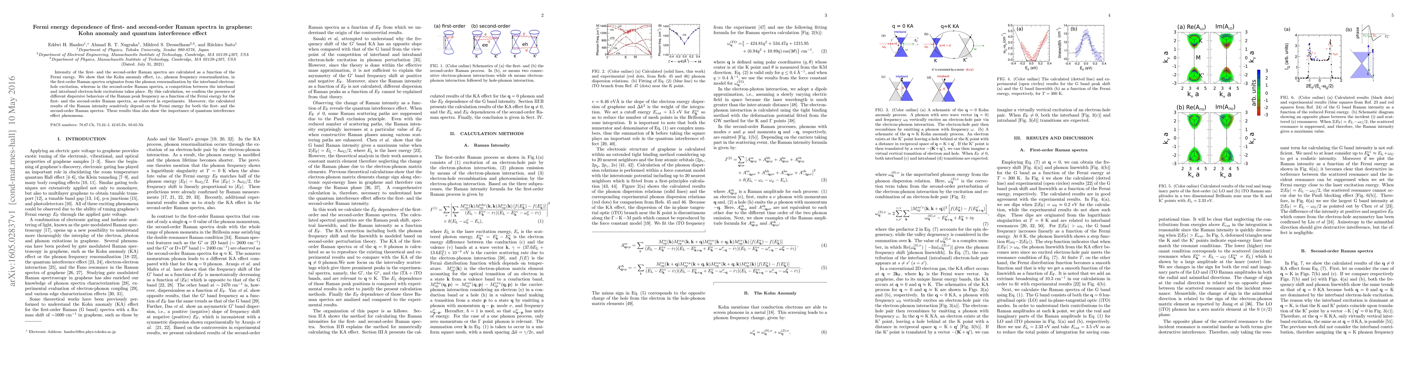 Intensity of the first- and the second-order Raman spectra are calculated as a function of the Fermi energy. We show that the Kohn anomaly effect, i.e., phonon frequency renormalization, in the first-order Raman spectra originates from the phonon renormalization by the interband electron-hole excitation, whereas in the second-order Raman spectra, a competition between the interband and intraband electron-hole excitations takes place. By this calculation, we confirm the presence of different dispersive behaviors of the Raman peak frequency as a function of the Fermi energy for the first- and the second-order Raman spectra, as observed in experiments. Moreover, the calculated results of the Raman intensity sensitively depend on the Fermi energy for both the first- and the second-order Raman spectra. These results thus also show the importance of quantum interference effect phenomena.