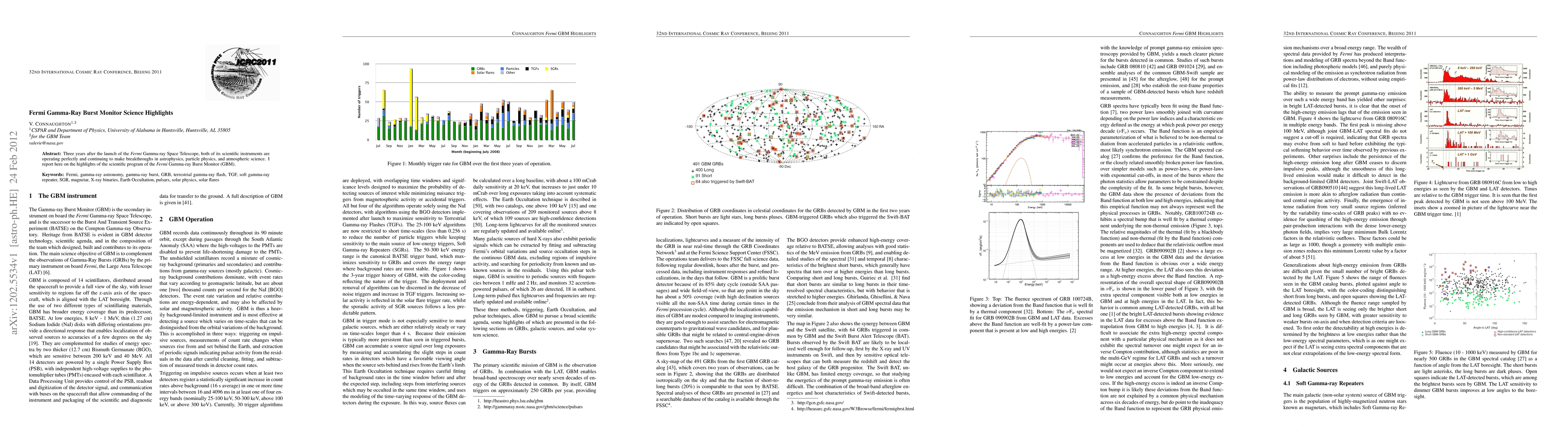 Three years after the launch of the Fermi Gamma-ray Space Telescope, both of its scientific instruments are operating perfectly and continuing to make breakthroughs in astrophysics, particle physics, and atmospheric science. I report here on the highlights of the scientific program of the Fermi Gamma-ray Burst Monitor (GBM).