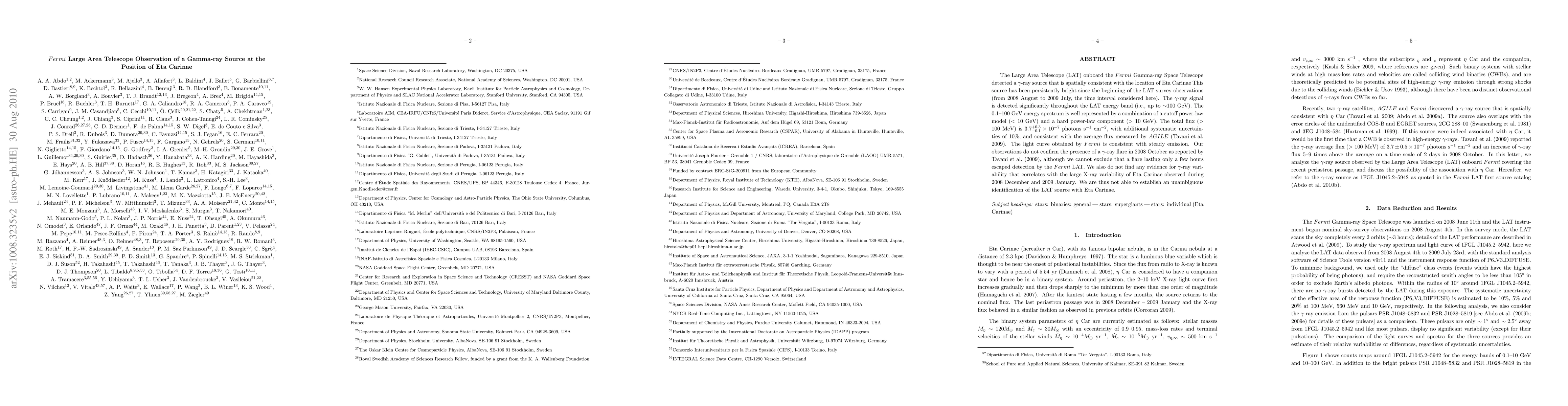 The Fermi Large Area Telescope detected a persistently bright gamma-ray source spatially consistent with Eta Carinae, with a steady emission spectrum up to ~100 GeV. The source's flux and spectrum do not confirm a 2008 October flare or correlate with Eta Carinae's X-ray variability, leaving its identification ambiguous.