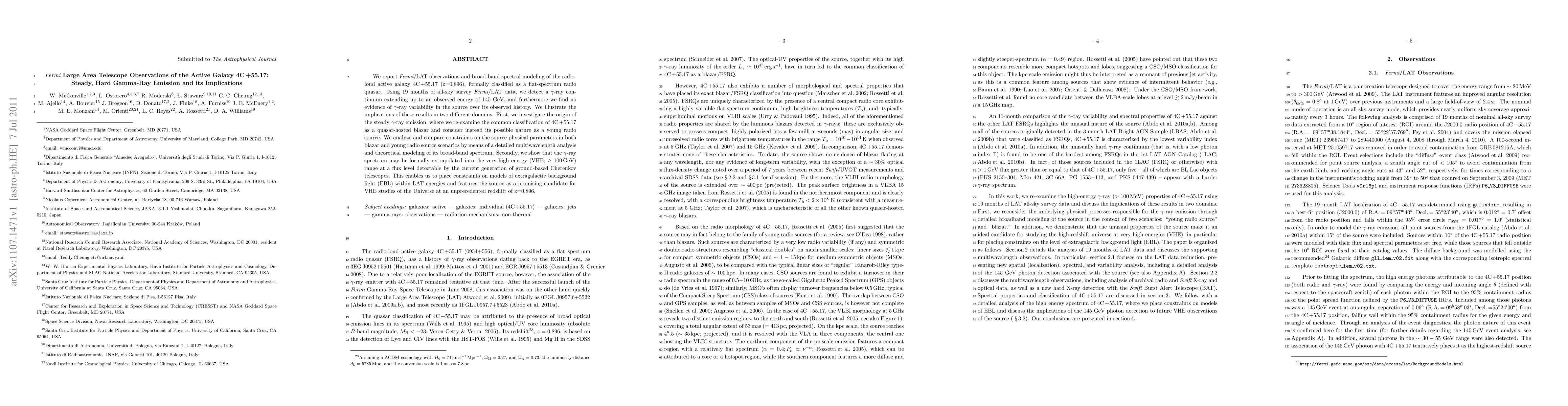 The Fermi Large Area Telescope detected steady, hard gamma-ray emission from the active galaxy 4C +55.17 up to 145 GeV with no observed variability. The study suggests re-evaluating its classification as a quasar-hosted blazar, proposing instead it may be a young radio source, and highlights its potential for very-high energy gamma-ray studies using current ground-based telescopes.