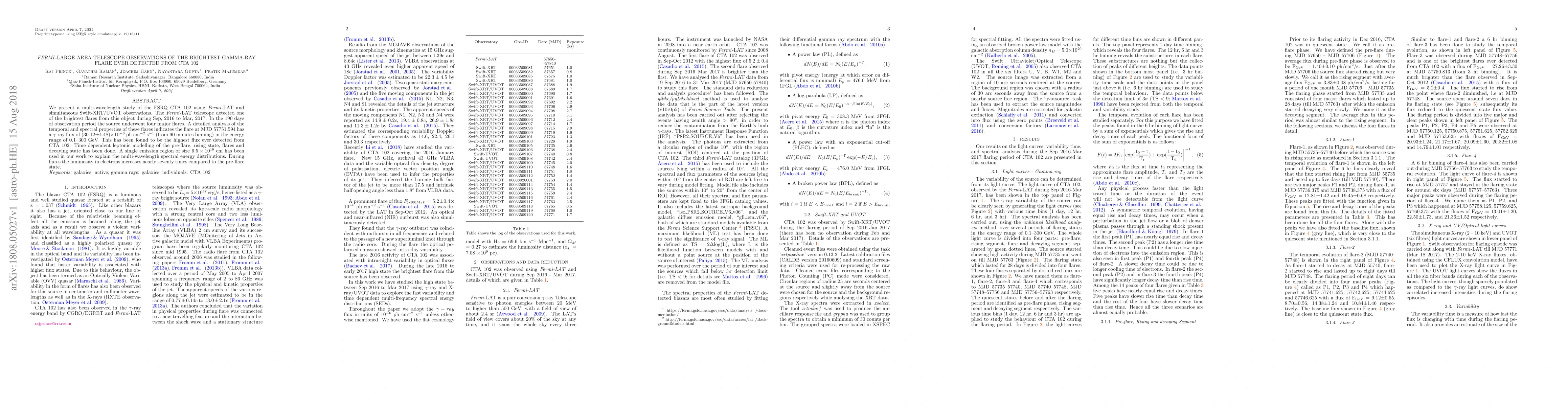 The Fermi-LAT telescope detected a bright gamma-ray flare from CTA 102, which was found to be the brightest ever recorded, with a luminosity increase of nearly seventy times during flares.