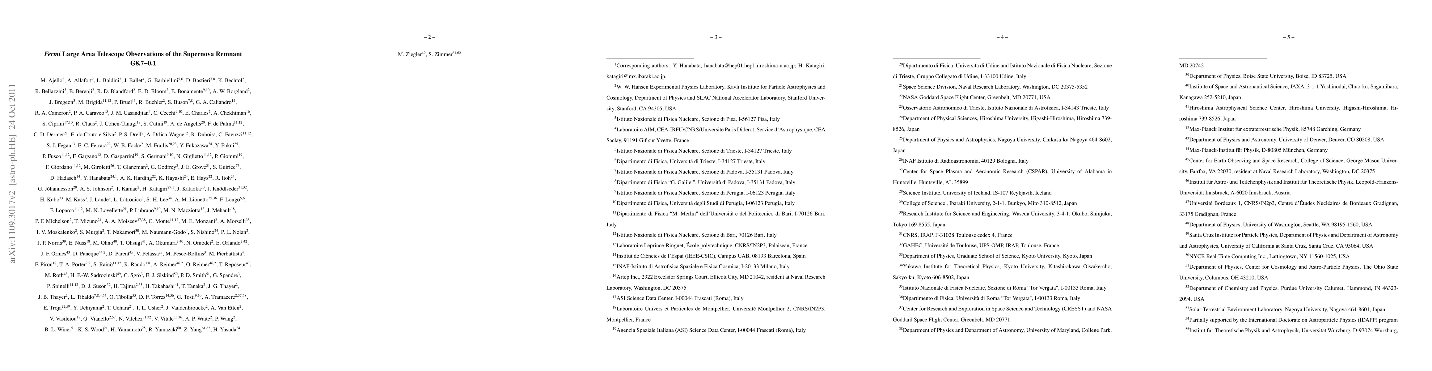 The Fermi Large Area Telescope observed the supernova remnant G8.7-0.1, finding extended GeV gamma-ray emission with a break at 2.4 GeV. This emission overlaps molecular clouds, suggesting interaction with these clouds. The GeV spectrum differs from TeV emission from HESS J1804-216, hinting at different particle acceleration and diffusion processes. The study discusses the possibility of constraining diffusion coefficients.