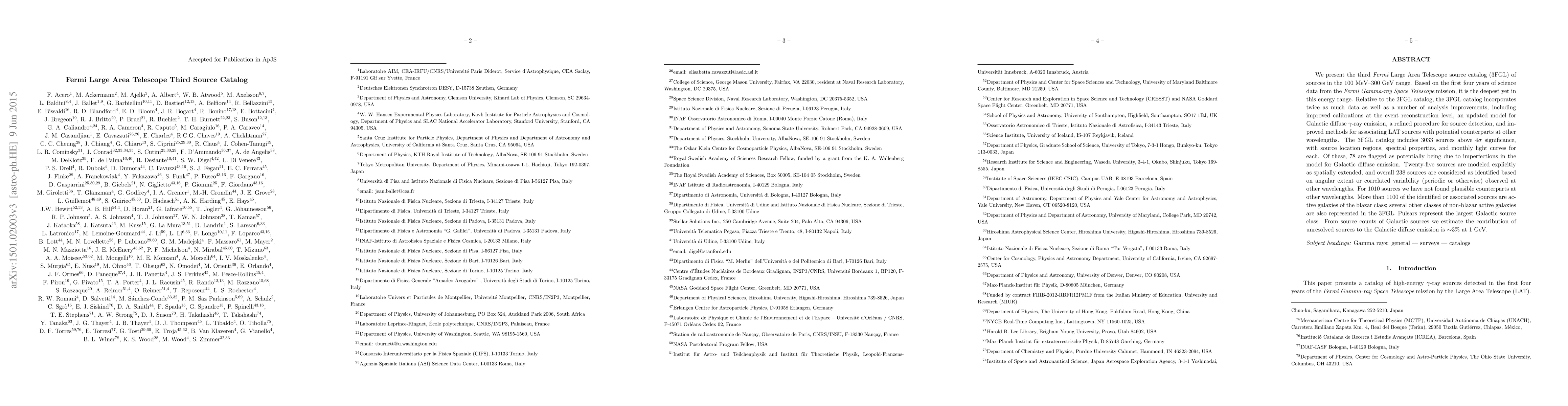 The 3FGL catalog from the Fermi Large Area Telescope, based on four years of data, is the deepest gamma-ray catalog in the 100 MeV-300 GeV range, featuring 3033 sources with improved calibrations and detection methods. It includes 232 identified sources, with blazars and pulsars being the most prominent classes.