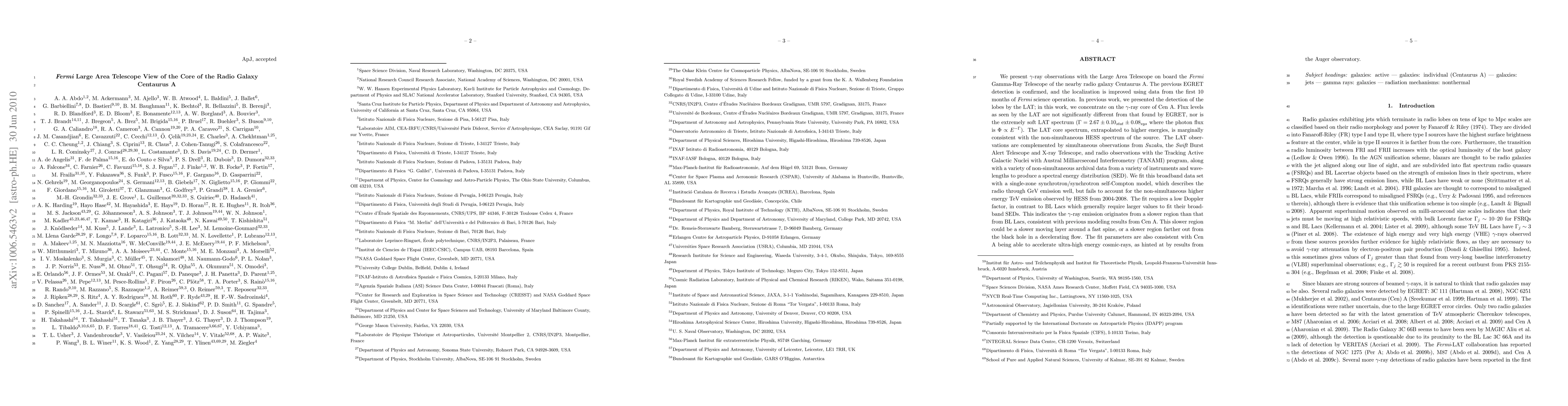 The Fermi Large Area Telescope confirms and improves the gamma-ray detection of the core of the nearby radio galaxy Centaurus A, showing a consistent flux and soft spectrum with previous EGRET observations. The broadband data fit suggests the gamma-ray emission originates from a slower region compared to BL Lacs, indicating a possible slower moving layer or a farther, decelerating flow.