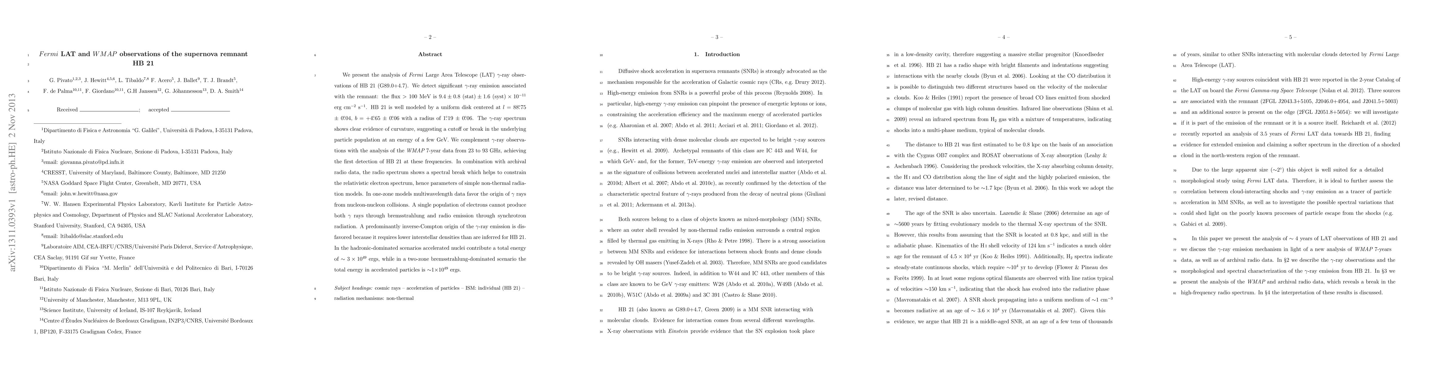 This paper reports on $\gamma$-ray observations of the supernova remnant HB 21 using Fermi LAT and WMAP, detecting significant $\gamma$-ray emission and a spectrum showing curvature indicative of a particle energy cutoff. The study also finds that a hadronic origin for the $\gamma$ rays is favored over an inverse-Compton mechanism.