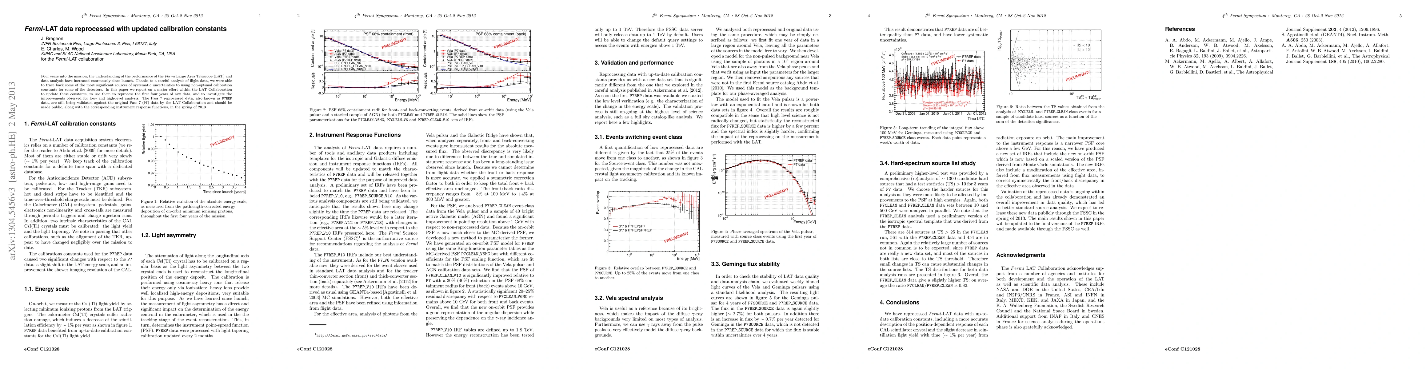 The Fermi-LAT Collaboration has updated calibration constants to improve data analysis accuracy, reprocessing 4 years of raw data for low- and high-level analyses.