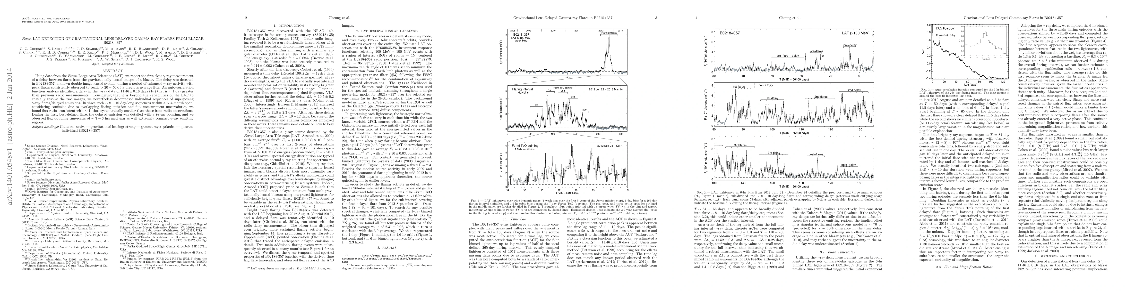 The Fermi-LAT detected a significant delay in gamma-ray flares between the lensed images of blazar B0218+357, confirming the gravitational lensing effect. The observed delay of 11.46 +/- 0.16 days during enhanced gamma-ray activity suggests extremely compact emitting regions.