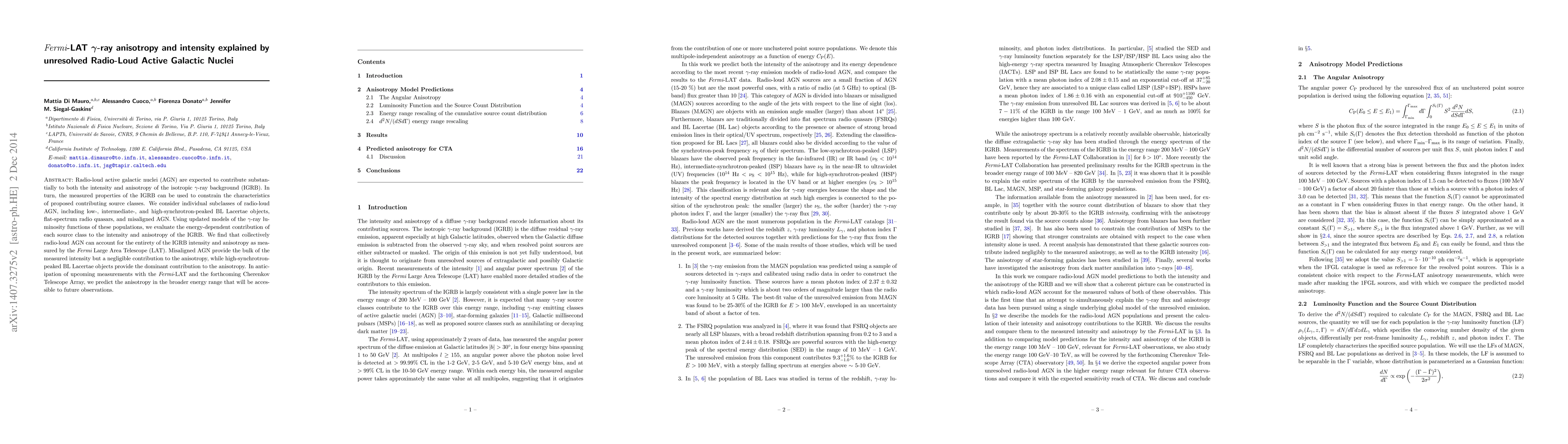 This paper demonstrates that radio-loud active galactic nuclei, particularly misaligned AGN and high-synchrotron-peaked BL Lacertae objects, can account for the observed intensity and anisotropy of the isotropic gamma-ray background as measured by the Fermi-LAT. Future observations are expected to further refine these findings.