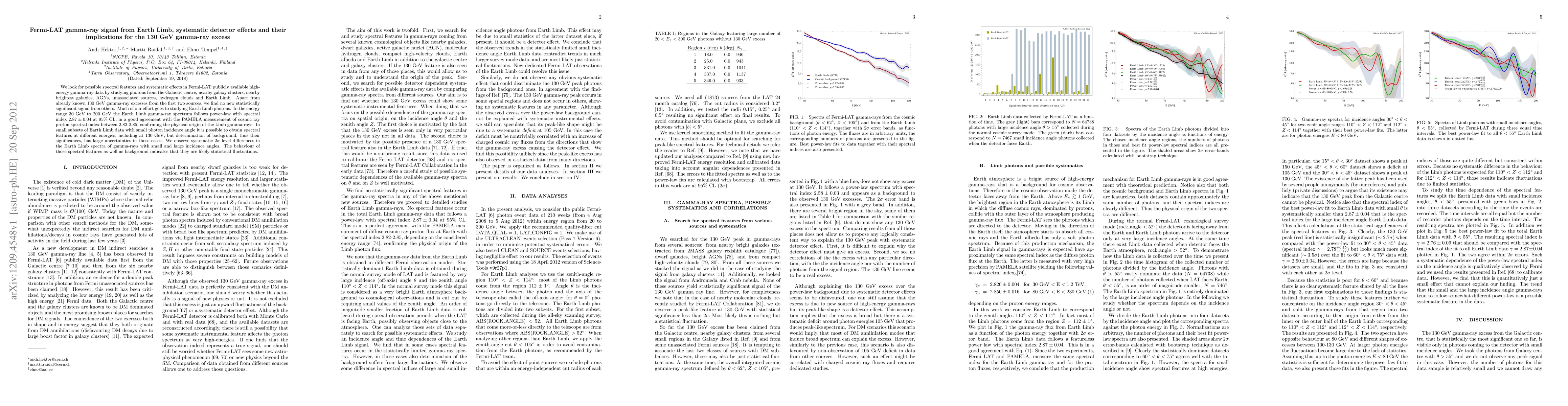 This paper investigates Fermi-LAT gamma-ray data for spectral features and systematic detector effects, focusing on the Earth Limb, and finds no new significant signals beyond the known 130 GeV gamma-ray excess. The Earth Limb spectrum aligns well with cosmic ray proton measurements, but small subsets show uncertain spectral features at 130 GeV, likely due to statistical fluctuations.