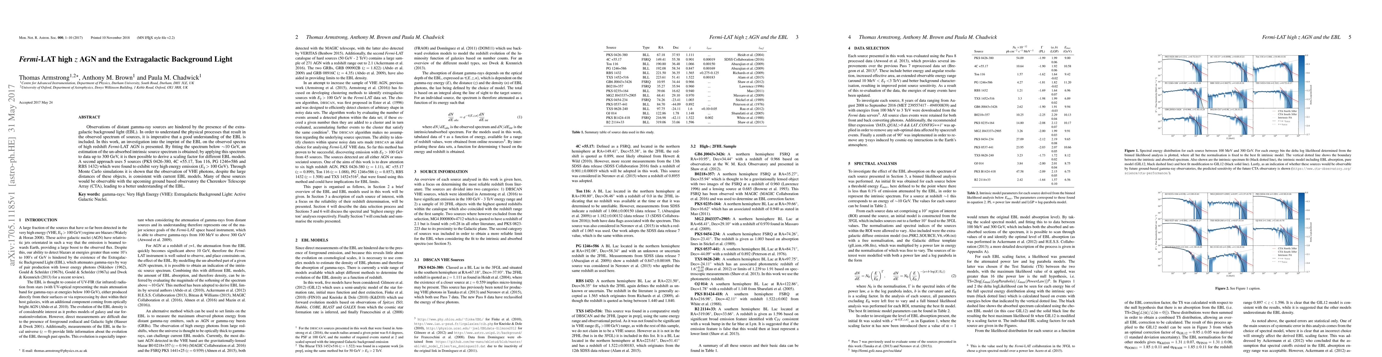 Observations of distant gamma-ray sources are hindered by the presence of the extragalactic background light (EBL). In order to understand the physical processes that result in the observed spectrum of sources, it is imperative that a good understanding of the EBL is included. In this work, an investigation into the imprint of the EBL on the observed spectra of high redshift Fermi-LAT AGN is presented. By fitting the spectrum below $\sim$10 GeV, an estimation of the un-absorbed intrinsic source spectrum is obtained; by applying this spectrum to data up to 300 GeV, it is then possible to derive a scaling factor for different EBL models. A second approach uses 5 sources (PKS 0426-380, 4C +55.17, Ton 116, PG 1246+586 and RBS 1432) which were found to exhibit very high energy emission ($E_{\gamma}>100$ GeV). Through Monte Carlo simulations it is shown that the observation of VHE photons, despite the large distances of these objects, is consistent with current EBL models. Many of these sources would be observable with the upcoming ground based observatory the Cherenkov Telescope Array (CTA), leading to a better understanding of the EBL.