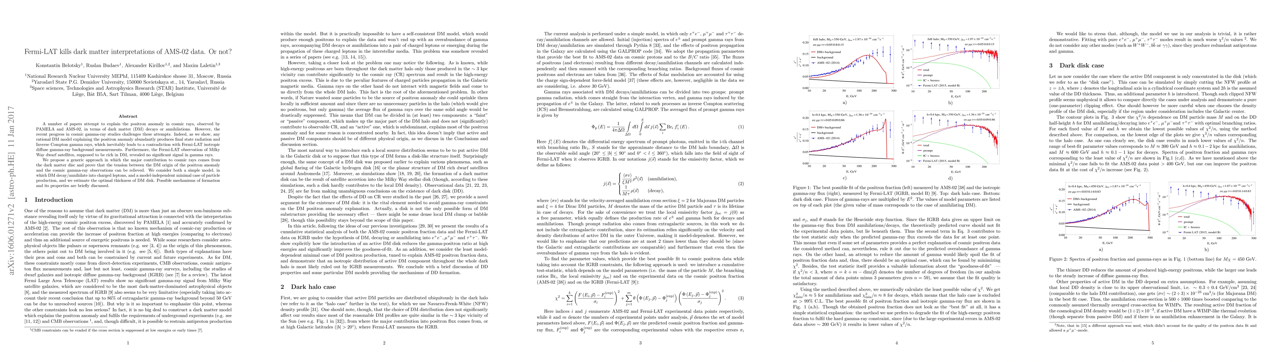 This paper argues that Fermi-LAT observations contradict dark matter explanations for the positron anomaly observed by AMS-02, but proposes a new model where dark matter in the galactic disc could alleviate this tension without conflicting with gamma-ray data.