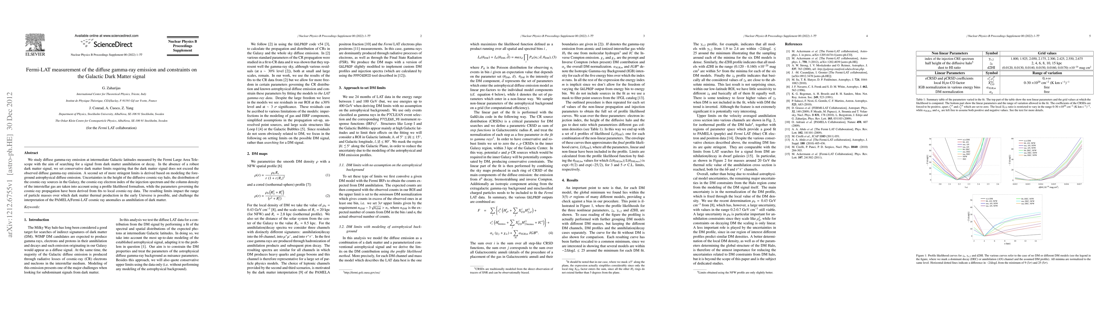 The Fermi-LAT measured diffuse gamma-ray emission to search for dark matter signals, finding no robust evidence for dark matter annihilation or decay. The study sets conservative limits on dark matter, challenging interpretations of PAMELA/Fermi-LAT cosmic ray anomalies as dark matter annihilation.