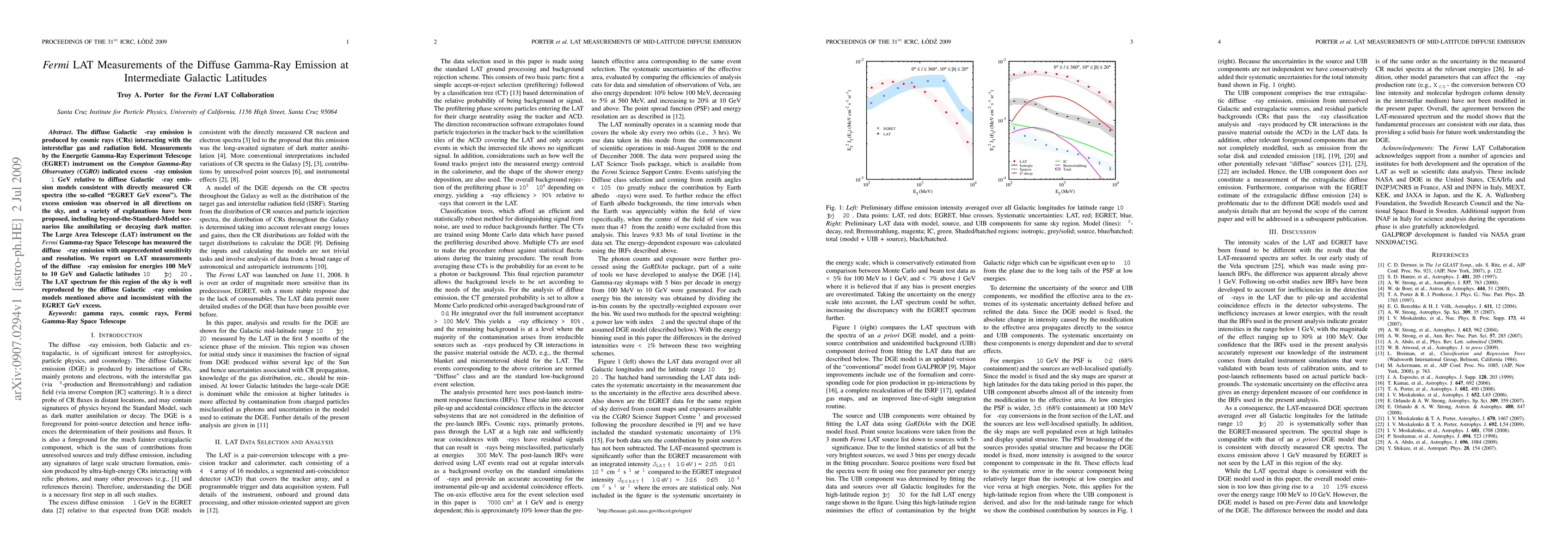 The Fermi LAT has measured the diffuse gamma-ray emission between 100 MeV and 10 GeV at intermediate Galactic latitudes, finding consistency with existing models and refuting the EGRET GeV excess previously observed. This suggests that the earlier excess may not be a universal phenomenon.