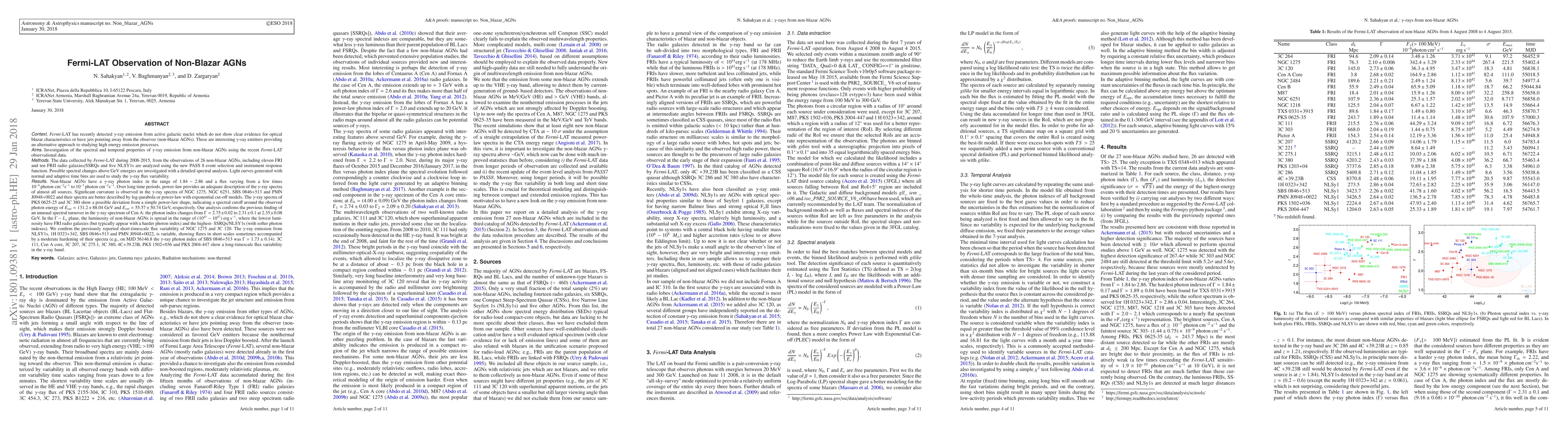 We report on a detailed investigation of the $\gamma$-ray emission from 26 non-blazar AGNs based on the Fermi LAT data accumulated for 7 years. The photon index of non-blazar AGNs changes in the range of 1.84-2.86 and the flux varies from a few times $10^{-9} photon\: cm^{-2} s^{-1}$ to $10^{-7} photon\: cm^{-2}s^{-1}$. Over long time periods, power-law provides an adequate description of the $\gamma$-ray spectra of almost all sources. Significant curvature is observed in the $\gamma$-ray spectra of NGC 1275, NGC 6251, SBS 0846+513 and PMN J0948+0022 and their spectra are better described by log-parabola or power-law with exponential cut-off models. The $\gamma$-ray spectra of PKS 0625-25 and 3C 380 show a possible deviation from a simple power-law shape, indicating a spectral cutoff around the observed photon energy of $E_{cut}=131.2\pm88.04$ GeV and $E_{cut}=55.57\pm50.74$ GeV, respectively. Our analysis confirms the previous finding of an unusual spectral turnover in the $\gamma$-ray spectrum of Cen A: the photon index changes from $2.75\pm0.02$ to $2.31\pm0.1$ at $2.35\pm0.08$ GeV. In the $\Gamma-L_{\gamma}$ plane, the luminosity of non-blazar AGNs is spread in the range of $10^{41}-10^{47}\: erg\: s^{-1}$, where the lowest luminosity have FRI radio galaxies (but typically appear with a harder photon index) and the highest- SSRQs/NLSY1s (with softer photon indexes). We confirm the previously reported short-timescale flux variability of NGC 1275 and 3C 120. The $\gamma$-ray emission from NLSY1s, 1H 0323+342, SBS 0846+513 and PMN J0948+0022, is variable, showing flares in short scales sometimes accompanied by a moderate hardening of their spectra (e.g., on MJD 56146.8 the $\gamma$-ray photon index of SBS 0846+513 was $1.73\pm0.14$). 3C 111, Cen A core, 3C 207, 3C 275.1, 3C 380, 4C+39.23B, PKS 1502+036 and PKS 2004-447 show a long-timescale flux variability in the $\gamma$-ray band.
