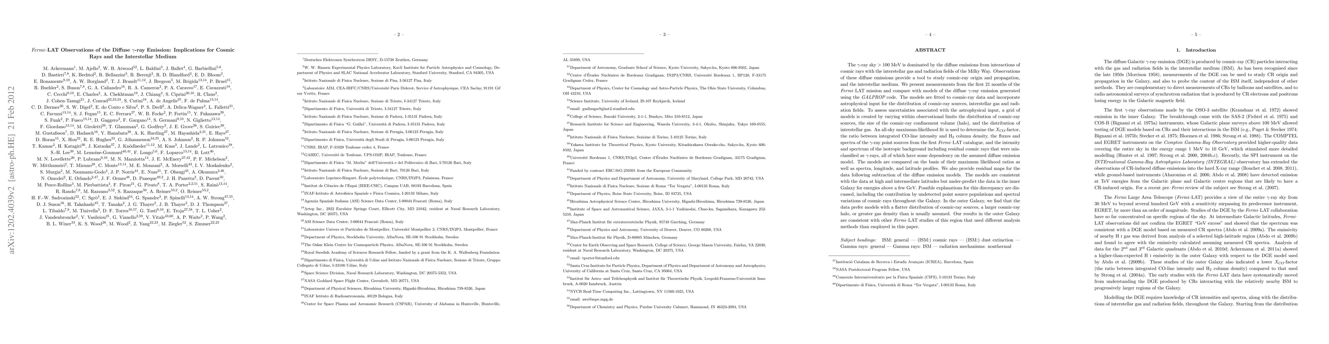 The Fermi-LAT mission provides measurements of diffuse gamma-ray emissions from cosmic ray interactions, offering insights into cosmic-ray origins and interstellar medium properties. The study compares Fermi-LAT observations with GALPROP models, finding consistency at high latitudes but discrepancies in the inner Galaxy, potentially due to undetected sources or cosmic ray spectral variations.