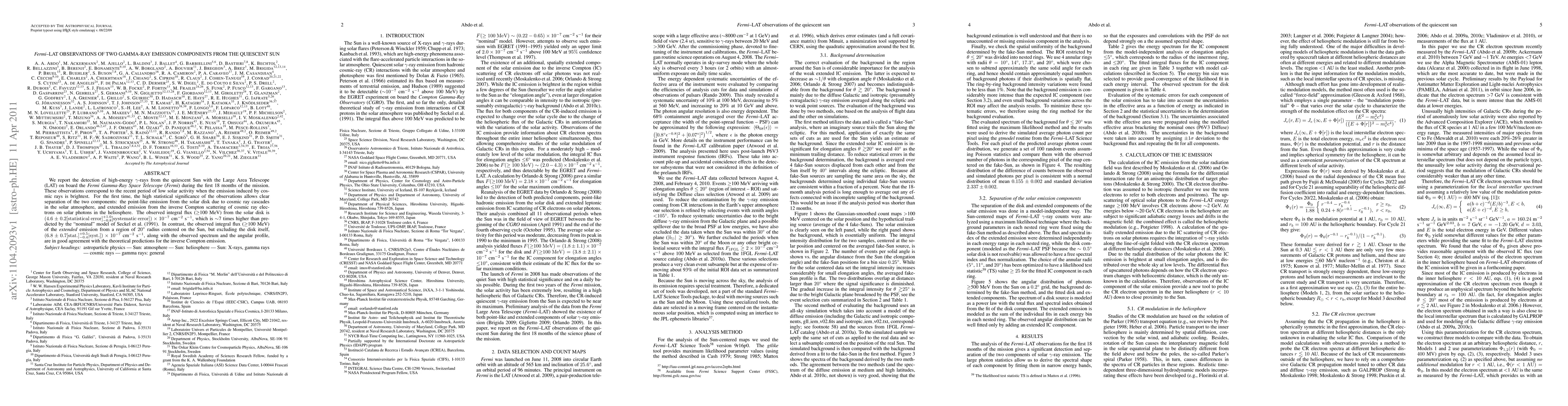 The Fermi-LAT detected high-energy gamma rays from the quiescent Sun, revealing two distinct emission components: point-like solar disk emission from cosmic ray cascades and extended emission from inverse Compton scattering. The observed solar disk flux exceeds predictions by a factor of 7.