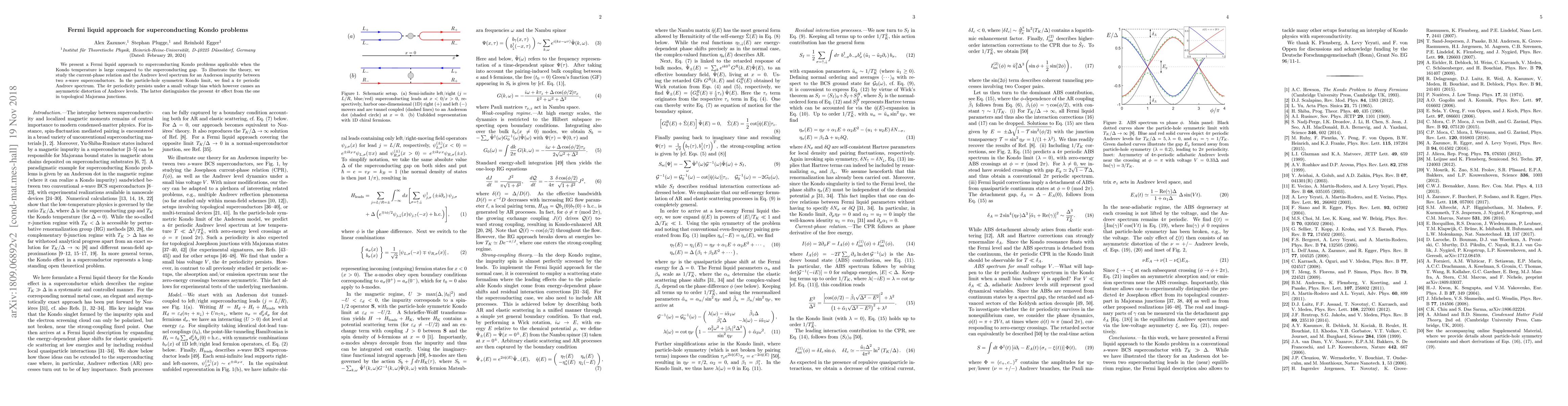 Researchers developed a Fermi liquid approach to study superconducting Kondo problems, finding a $4 ext{°}$ periodic Andreev spectrum in the particle-hole symmetric Kondo limit.