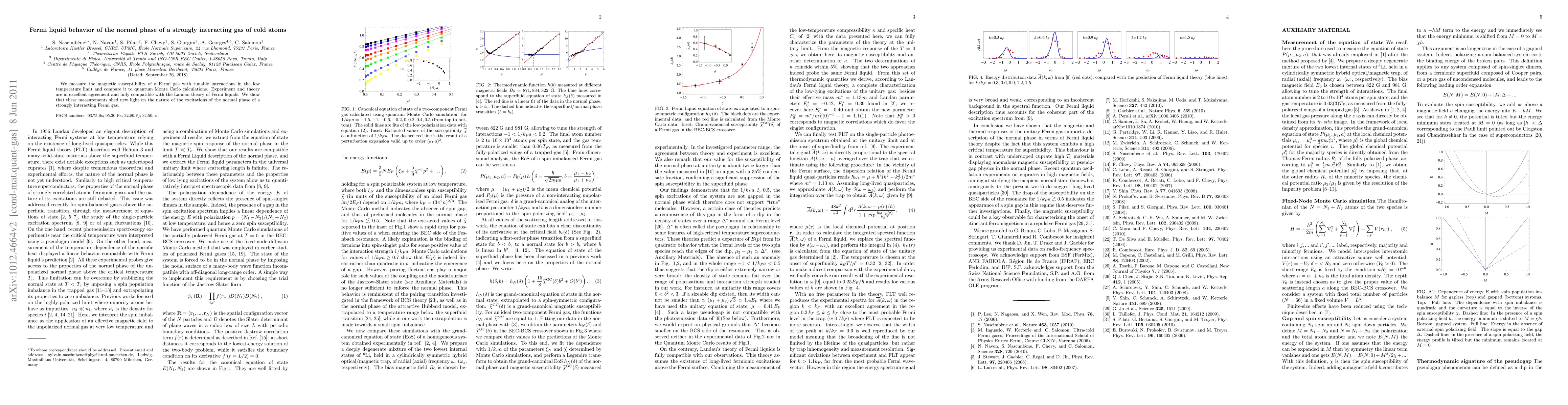 This study measures the magnetic susceptibility of a strongly interacting Fermi gas at low temperatures, demonstrating excellent agreement with quantum Monte Carlo calculations and supporting the Landau theory of Fermi liquids. The findings provide new insights into the excitations of the normal phase of a strongly interacting Fermi gas.
