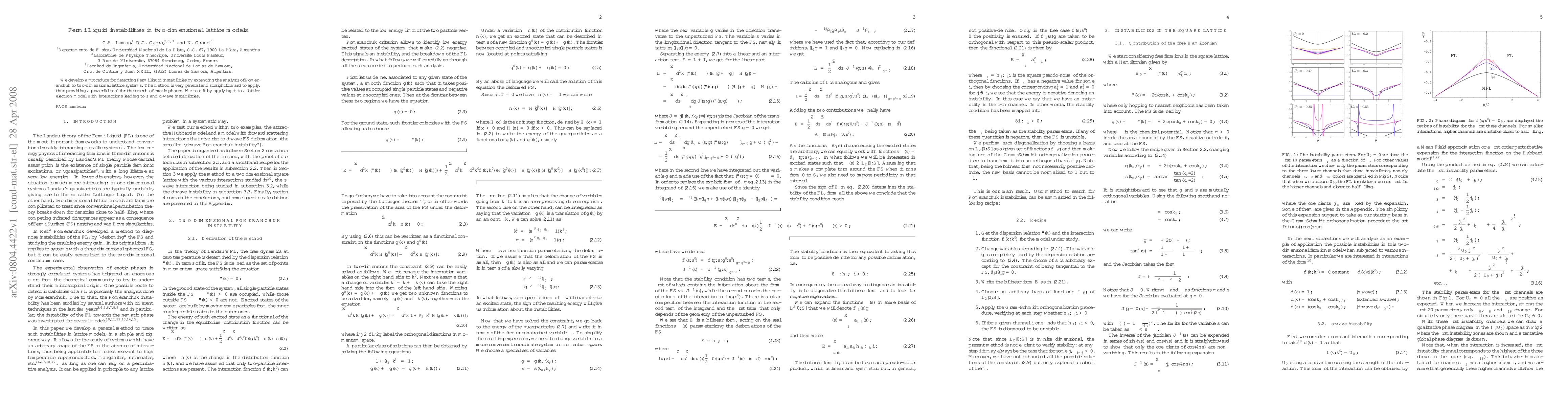 This paper proposes a method to detect Fermi liquid instabilities in two-dimensional lattice systems by extending Pomeranchuk's analysis. The developed technique is general and straightforward, effectively identifying $s$ and d-wave instabilities in a lattice electron model.