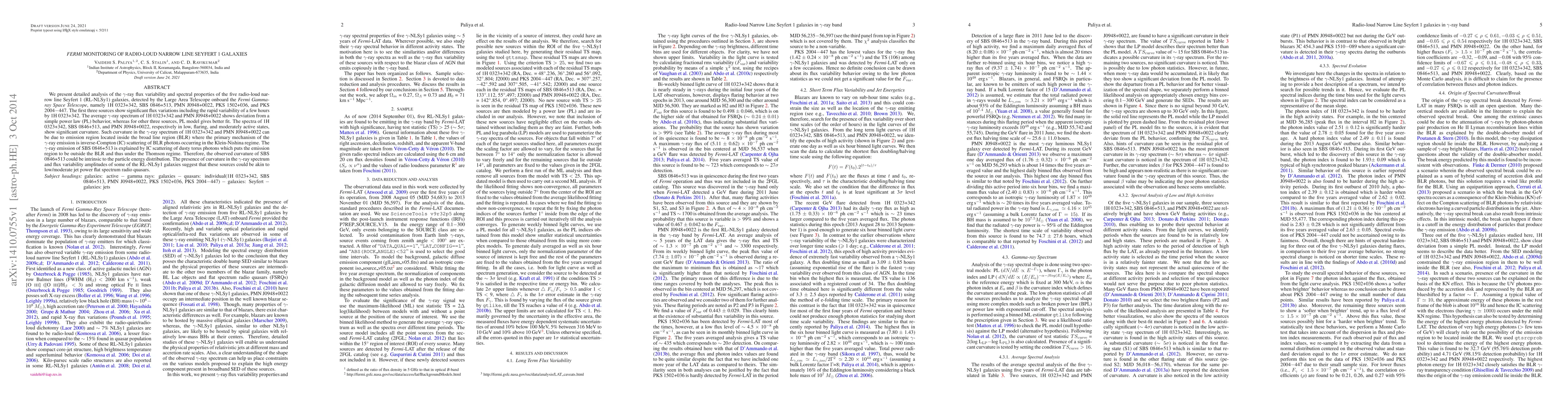 We present detailed analysis of the gamma-ray flux variability and spectral properties of the five radio-loud narrow line Seyfert 1 (RL-NLSy1) galaxies, detected by the Large Area Telescope onboard the Fermi Gamma-ray Space Telescope, namely 1H 0323+342, SBS 0846+513, PMN J0948+0022, PKS 1502+036, and PKS 2004$-$447. The first three sources show significant flux variations including the rapid variability of a few hours by 1H 0323+342. The average gamma-ray spectrum of 1H 0323+342 and PMN J0948+0022 shows deviation from a simple power law (PL) behavior, whereas for other three sources, PL model gives better fit. The spectra of 1H 0323+342, SBS 0846+513, and PMN J0948+0022, respectively in low, flaring, and moderately active states, show significant curvature. Such curvature in the gamma-ray spectrum of 1H 0323+342 and PMN J0948+0022 can be due to emission region located inside the broad line region (BLR) where the primary mechanism of the gamma-ray emission is inverse-Compton (IC) scattering of BLR photons occurring in the Klein-Nishina regime. The gamma-ray emission of SBS 0846+513 is explained by IC scattering of dusty torus photons which puts the emission region to be outside the BLR and thus under the Thomson regime. Therefore, the observed curvature of SBS 0846+513 could be intrinsic to the particle energy distribution. The presence of curvature in the gamma-ray spectrum and flux variability amplitudes of some of the RL-NLSy1 galaxies suggest that these sources could be akin to low/moderate jet power flat spectrum radio quasars.