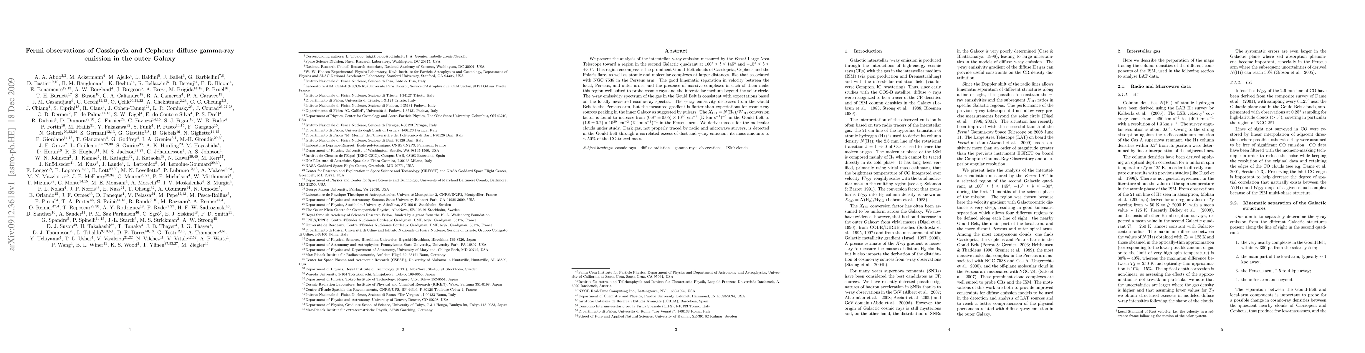 We present the analysis of the interstellar gamma-ray emission measured by the Fermi Large Area Telescope toward a region in the second Galactic quadrant at 100 deg < l < 145 deg and -15 deg < b < +30 deg. This region encompasses the prominent Gould-Belt clouds of Cassiopeia, Cepheus and the Polaris flare, as well as atomic and molecular complexes at larger distances, like that associated with NGC 7538 in the Perseus arm. The good kinematic separation in velocity between the local, Perseus, and outer arms, and the presence of massive complexes in each of them make this region well suited to probe cosmic rays and the interstellar medium beyond the solar circle. The gamma-ray emissivity spectrum of the gas in the Gould Belt is consistent with expectations based on the locally measured cosmic-ray spectra. The gamma-ray emissivity decreases from the Gould Belt to the Perseus arm, but the measured gradient is flatter than expectations for cosmic-ray sources peaking in the inner Galaxy as suggested by pulsars. The Xco=N(H2)/W(CO) conversion factor is found to increase from (0.87 +- 0.05) 10^20 cm^-2 (K km s^-1)^-1 in the Gould Belt to (1.9 +- 0.2) 10^20 cm^-2 (K km s^-1)^-1 in the Perseus arm. We derive masses for the molecular clouds under study. Dark gas, not properly traced by radio and microwave surveys, is detected in the Gould Belt through a correlated excess of dust and gamma-ray emission: its mass amounts to ~50% of the CO-traced mass.