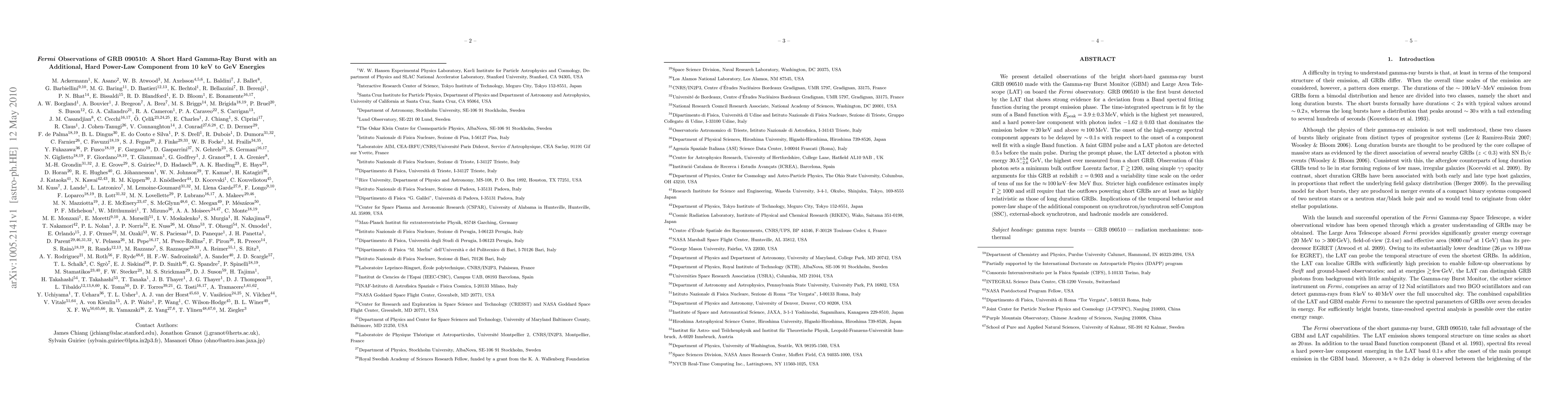 We present detailed observations of the bright short-hard gamma-ray burst GRB 090510 made with the Gamma-ray Burst Monitor (GBM) and Large Area Telescope (LAT) on board the Fermi observatory. GRB 090510 is the first burst detected by the LAT that shows strong evidence for a deviation from a Band spectral fitting function during the prompt emission phase. The time-integrated spectrum is fit by the sum of a Band function with $\Epeak = 3.9\pm 0.3$\,MeV, which is the highest yet measured, and a hard power-law component with photon index $-1.62\pm 0.03$ that dominates the emission below $\approx$\,20\,keV and above $\approx$\,100\,MeV. The onset of the high-energy spectral component appears to be delayed by $\sim$\,0.1\,s with respect to the onset of a component well fit with a single Band function. A faint GBM pulse and a LAT photon are detected 0.5\,s before the main pulse. During the prompt phase, the LAT detected a photon with energy $30.5^{+5.8}_{-2.6}$ GeV, the highest ever measured from a short GRB. Observation of this photon sets a minimum bulk outflow Lorentz factor, $\Gamma\ga$\,1200, using simple $\gamma\gamma$ opacity arguments for this GRB at redshift $z = 0.903$ and a variability time scale on the order of tens of ms for the $\approx$\,100\,keV--few MeV flux. Stricter high confidence estimates imply $\Gamma \ga 1000$ and still require that the outflows powering short GRBs are at least as highly relativistic as those of long duration GRBs. Implications of the temporal behavior and power-law shape of the additional component on synchrotron/synchrotron self-Compton (SSC), external-shock synchrotron, and hadronic models are considered.