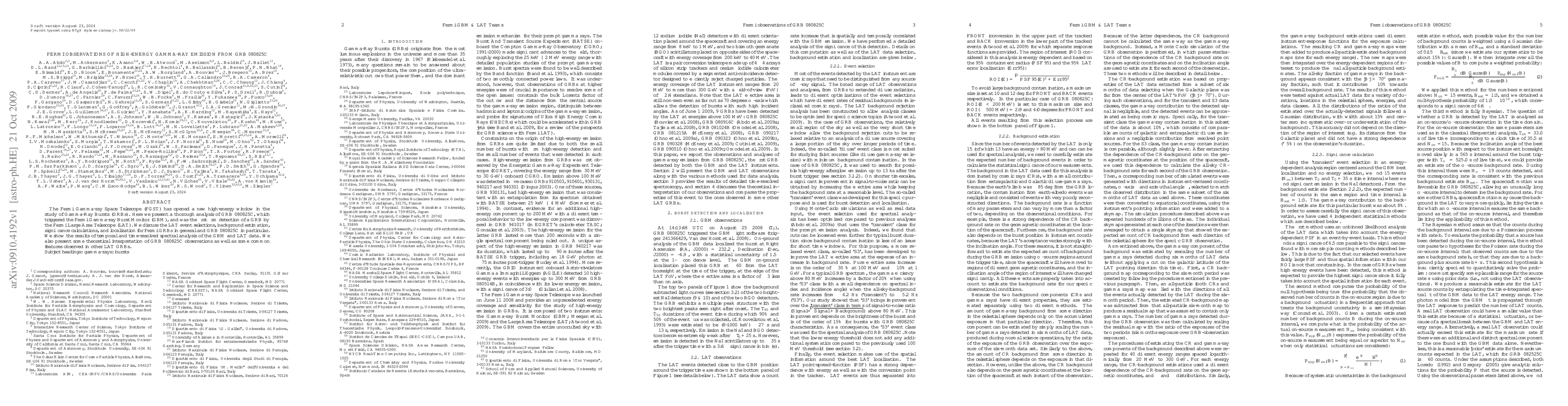 The Fermi Gamma-ray Space Telescope detected high-energy gamma-ray emission from GRB 080825C, marking the first GRB observed by the Fermi Large Area Telescope (LAT). The paper details the analysis of GRB 080825C, including event selection, background estimation, and spectral analysis, providing insights into the burst's characteristics and common features observed in other LAT GRBs.