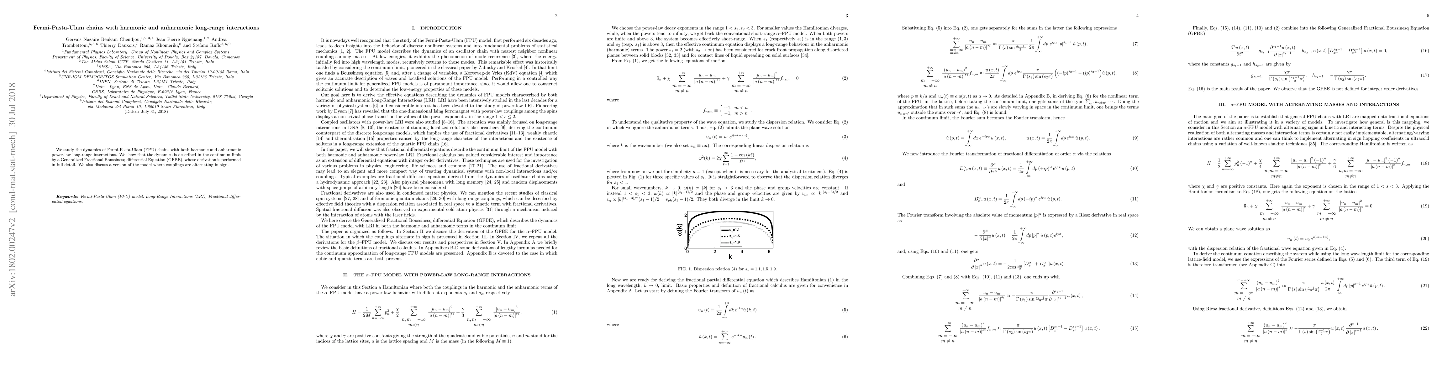 This paper investigates the dynamics of Fermi-Pasta-Ulam chains featuring harmonic and anharmonic long-range interactions, revealing that the continuum limit is governed by a generalized fractional Boussinesq equation, with detailed derivation provided. It also explores a variant with alternating sign couplings.