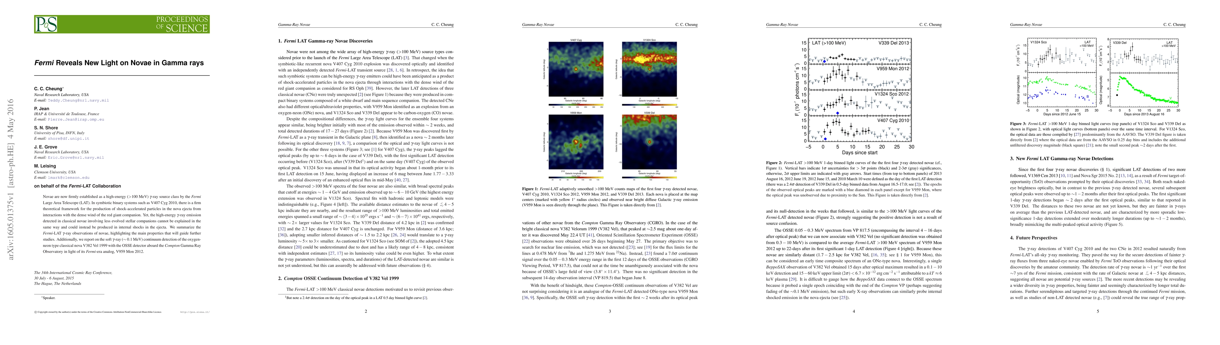 The Fermi Large Area Telescope (LAT) has identified novae as significant gamma-ray sources, particularly in symbiotic binary systems. The paper discusses the differing mechanisms behind gamma-ray emission in classical novae versus those with red giant companions, suggesting internal shocks as a possible source.