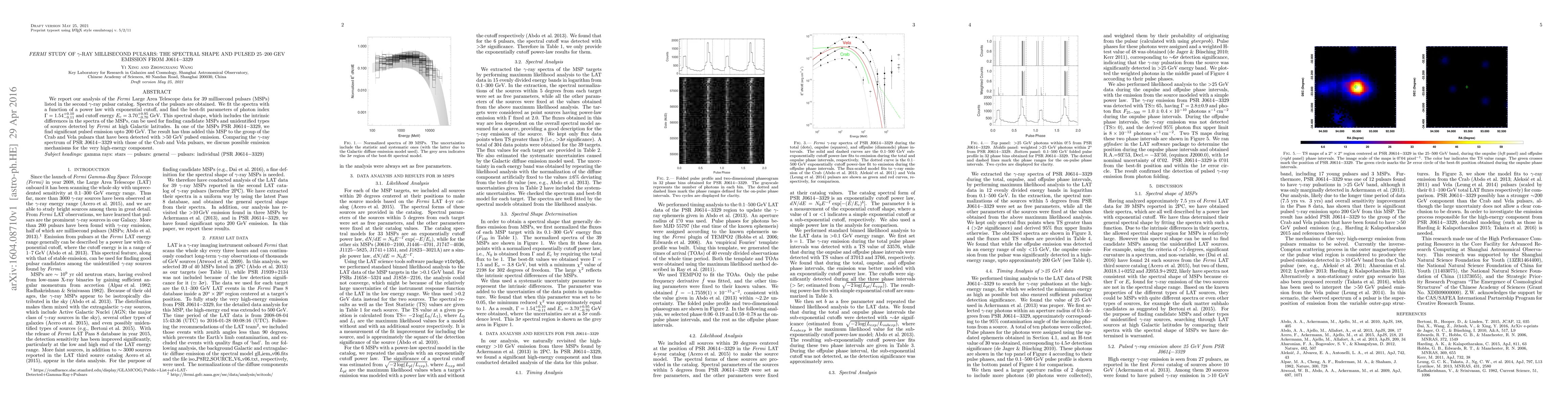 This Fermi study analyzes 39 millisecond pulsars, determining their gamma-ray spectra with a power-law cutoff model. Key findings include a mean photon index of 1.54 and cutoff energy of 3.70 GeV. Notably, PSR J0614-3329 shows significant pulsed emission up to 200 GeV, placing it among the Crab and Vela pulsars with >50 GeV pulsed emission, and prompting discussion on high-energy emission mechanisms.