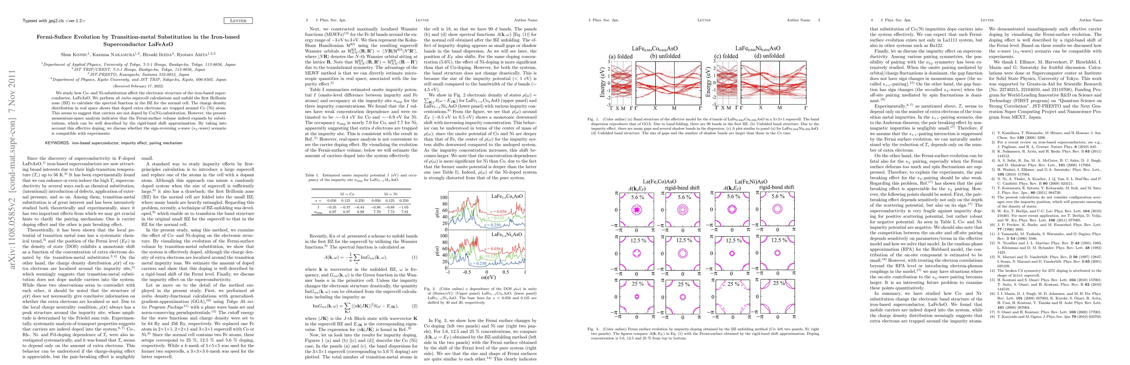 This paper investigates the impact of Co and Ni substitutions on the electronic structure of LaFeAsO, an iron-based superconductor, using {\it ab initio} calculations. Despite trapped extra electrons around Co/Ni atoms, the Fermi-surface volume expands, suggesting a rigid-band shift, which prompts a discussion on the compatibility of the $s_{\pm}$-wave pairing scenario with experimental observations.